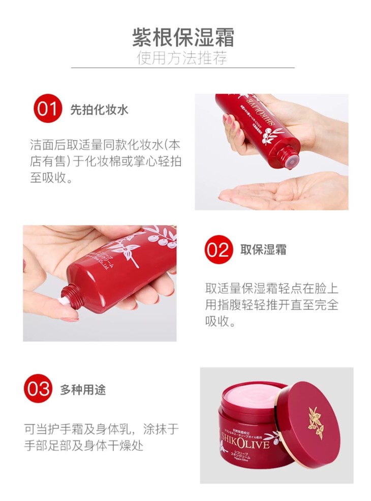 紫草根是防干防过M的一种植物,保湿霜里面还有当归,对女性很友好,可以促进血液的吸收和循环,可以K氧化,K衰!保湿霜还含有维生素b成分,可以有一点F止皮&炎的作用👍🏻