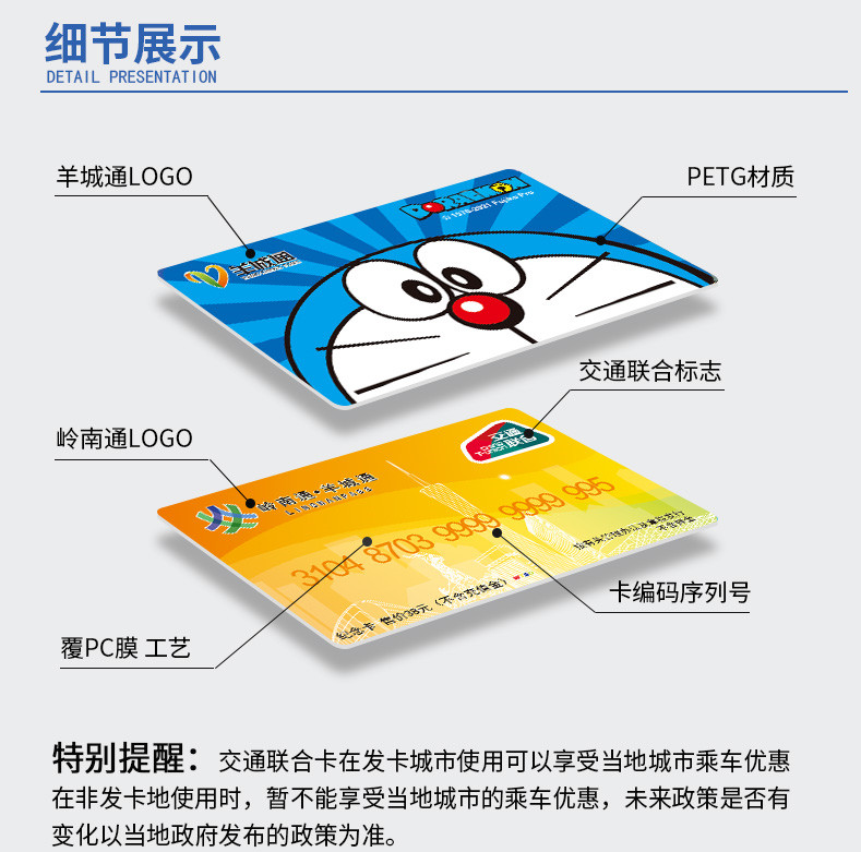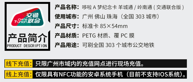 本产品不含充值金,充值后使用,享受羊城通岭南通相关优惠政策。“哆啦A梦”羊城通纪念卡与本商城其他商品分开发货,运费分开计算。