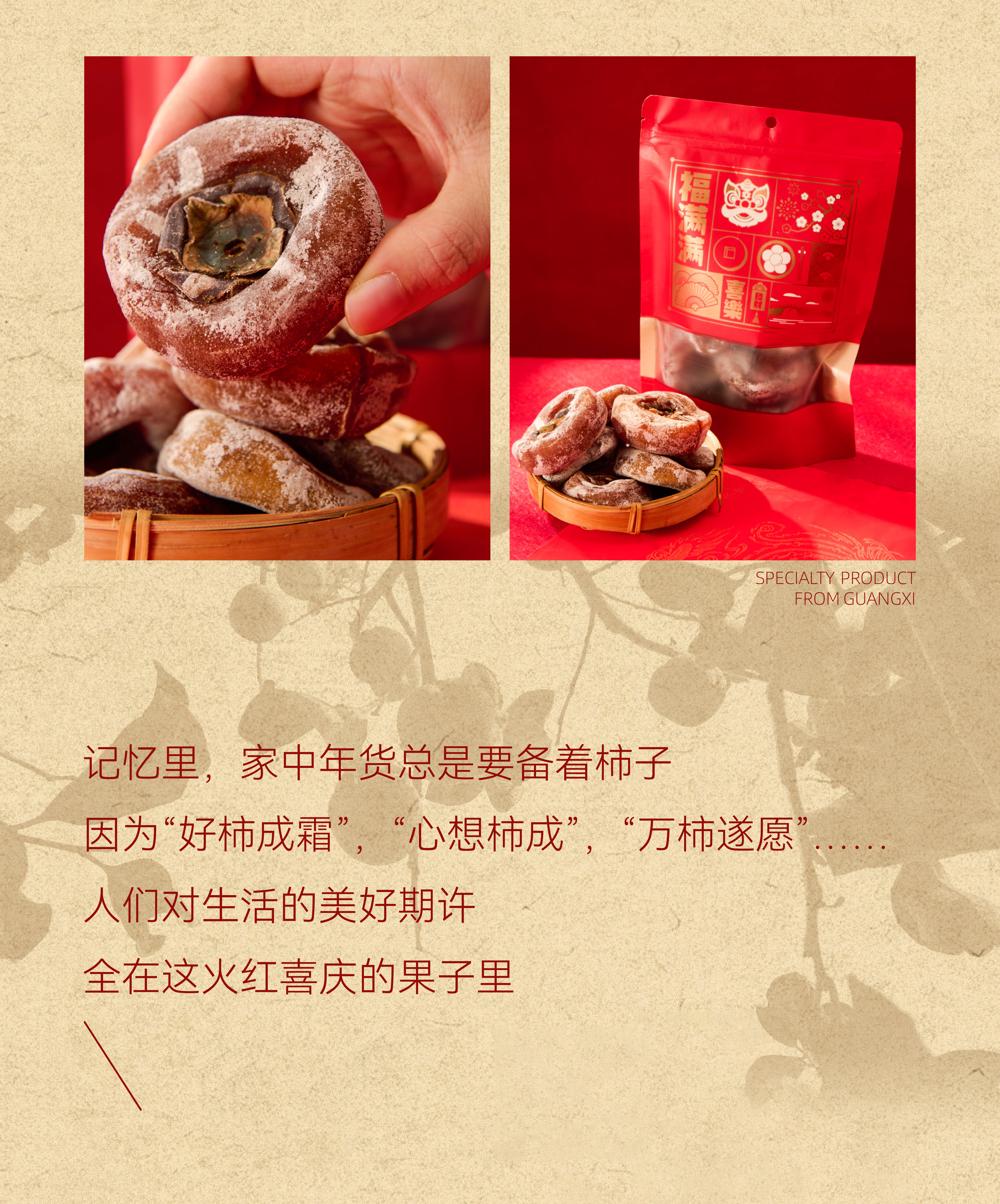 *柿饼上面的白点为晾晒后糖化后的霜,属于正常现象,收到后请放冰箱保存。