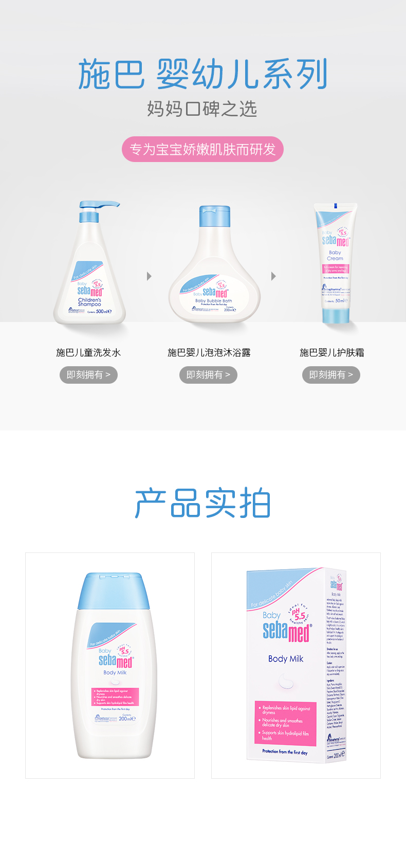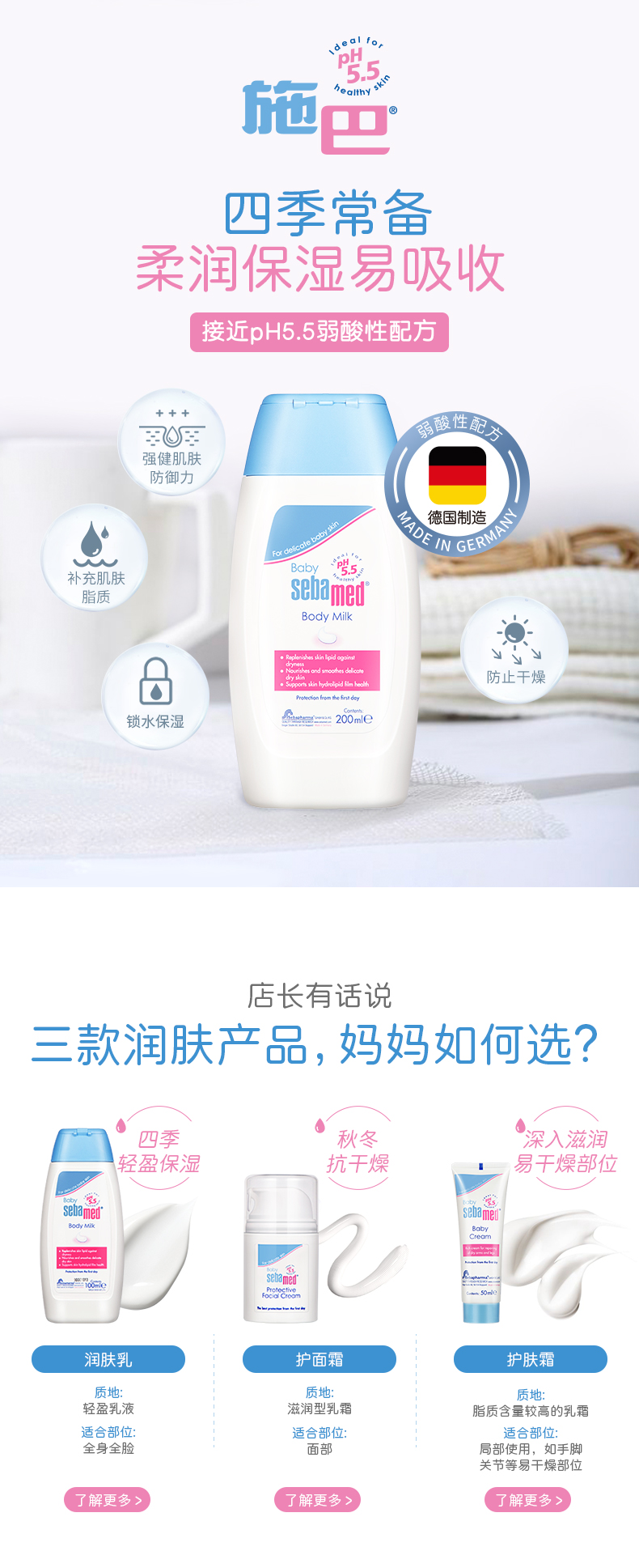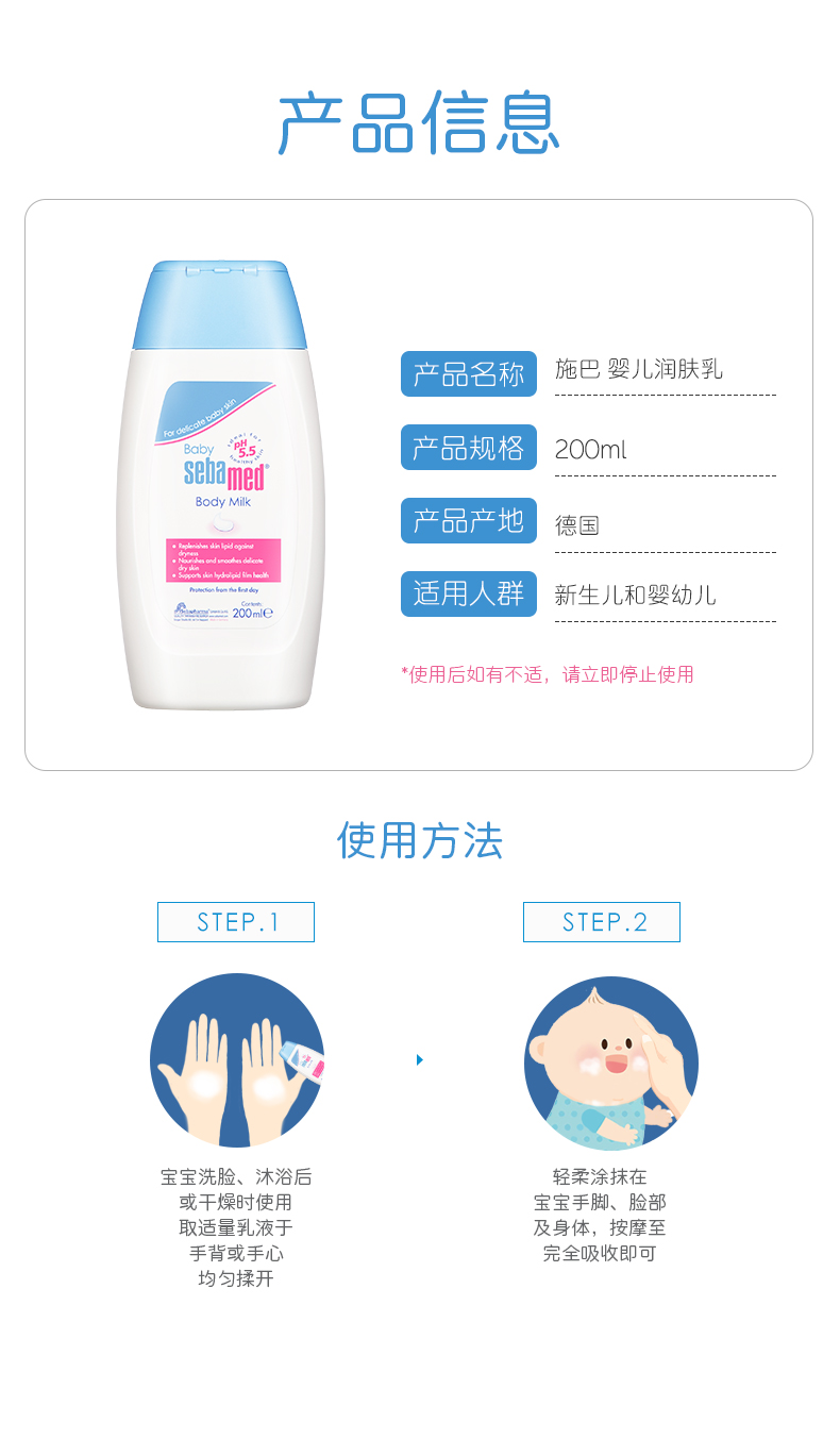 德国施巴婴儿润肤乳100ml儿童面霜宝宝身体乳保湿滋润4103040180964