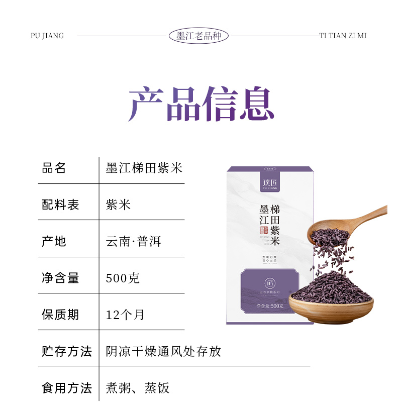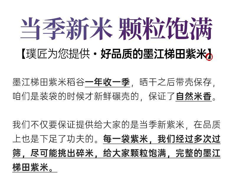 璞匠 墨江梯田紫米紫糯米新米糙米五谷杂粮米甜品紫米面包500g