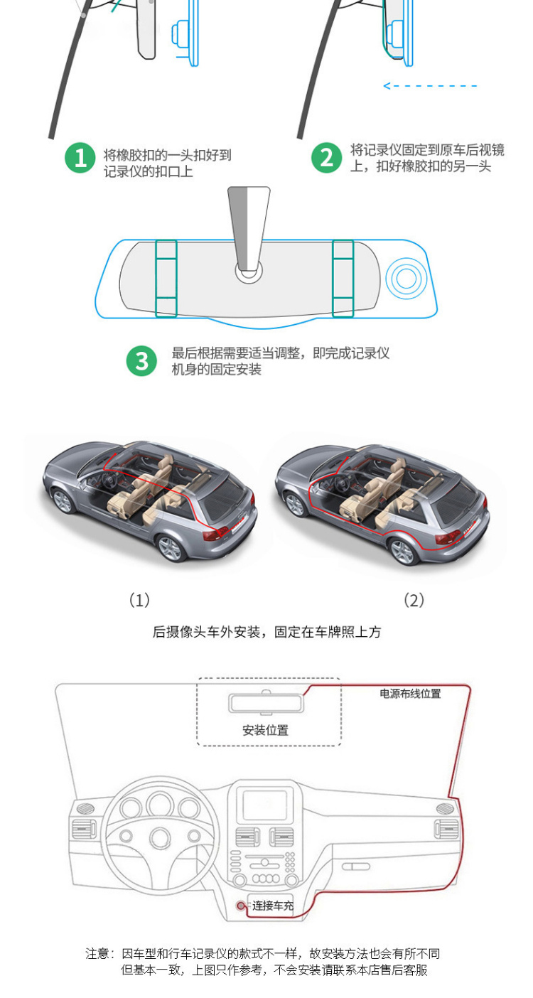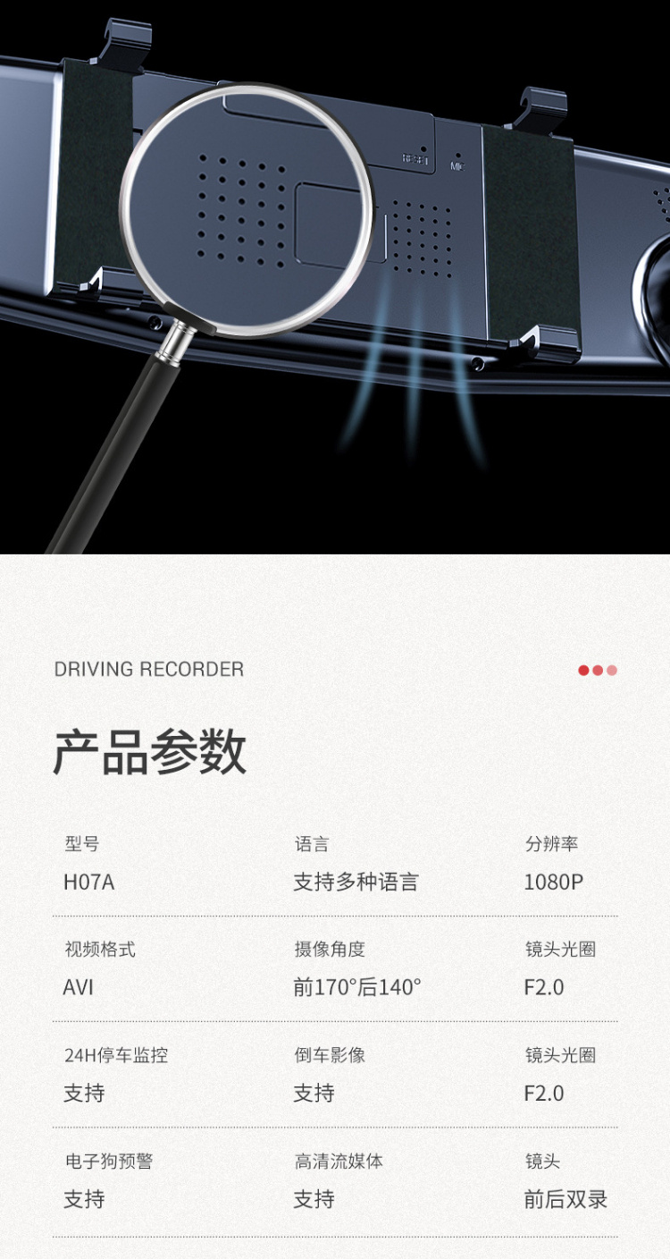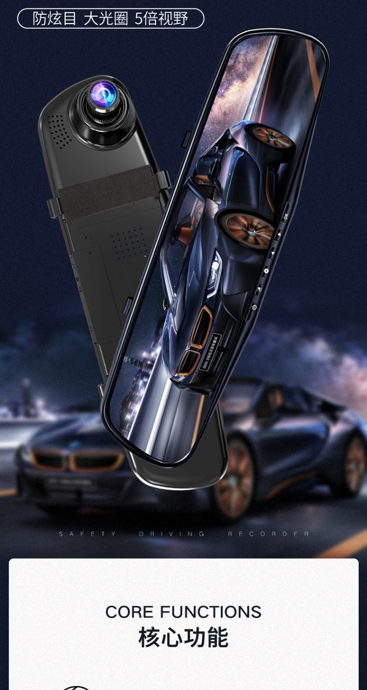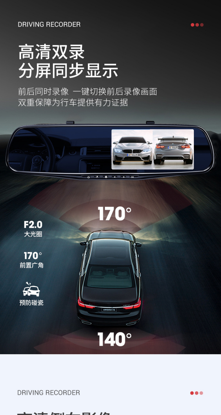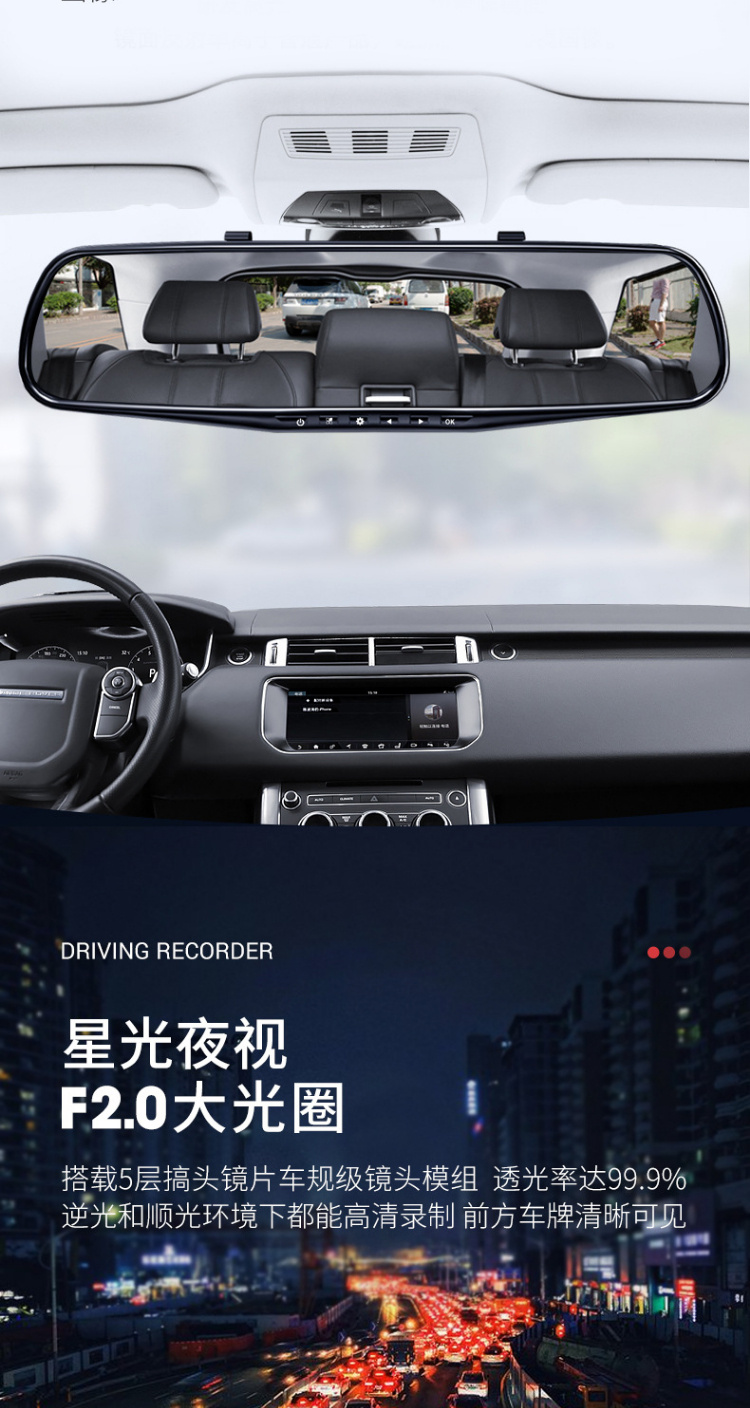 【行车记录仪】汽车载后视镜行车记录仪高清前后双镜头1080p带倒车影像电子