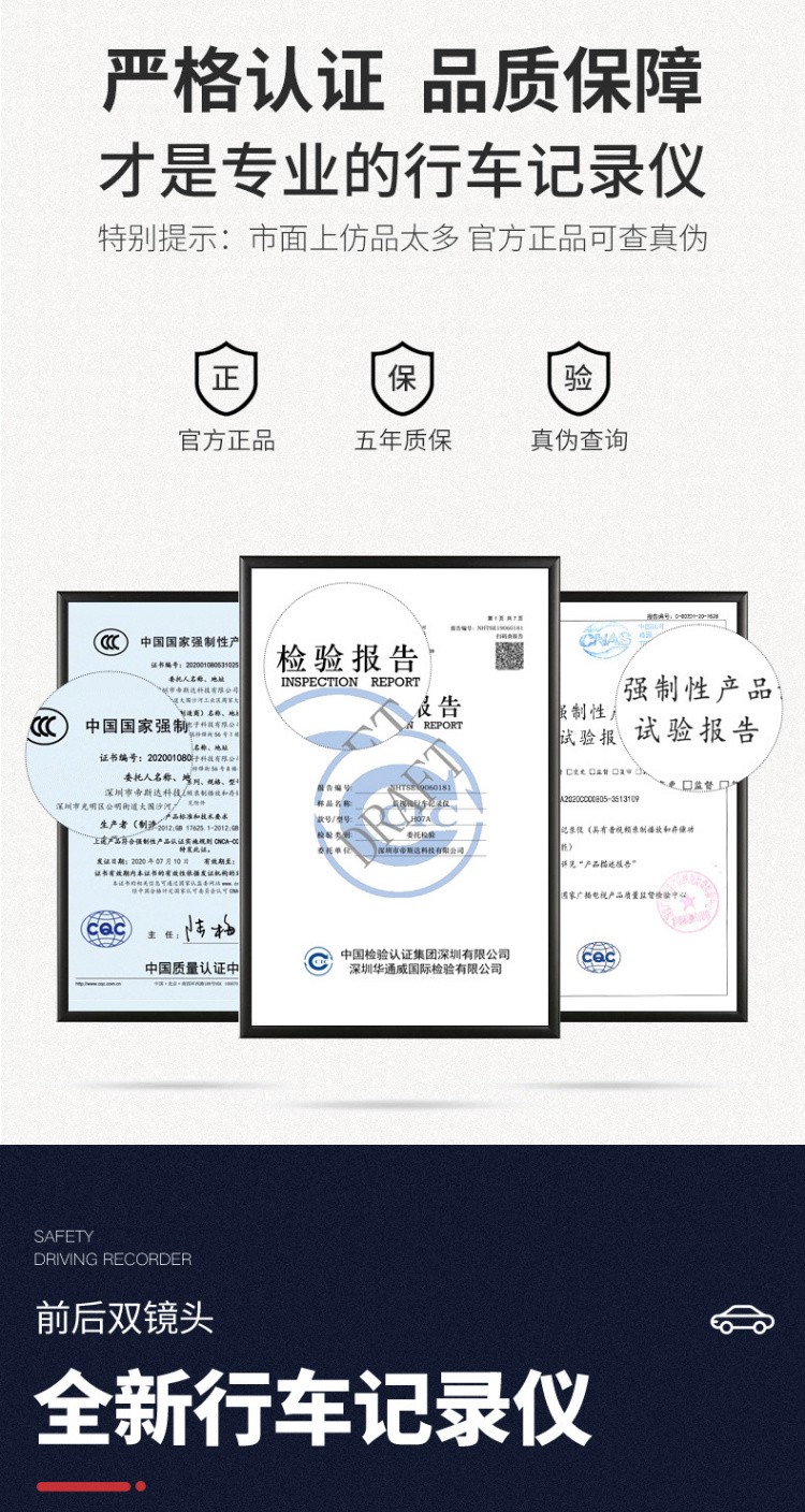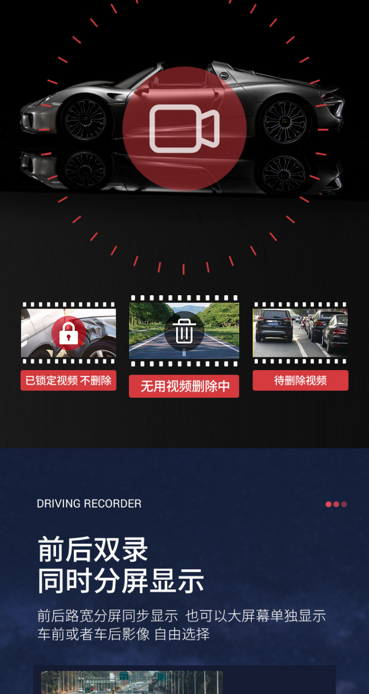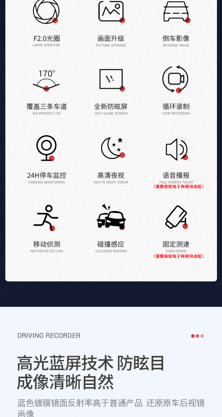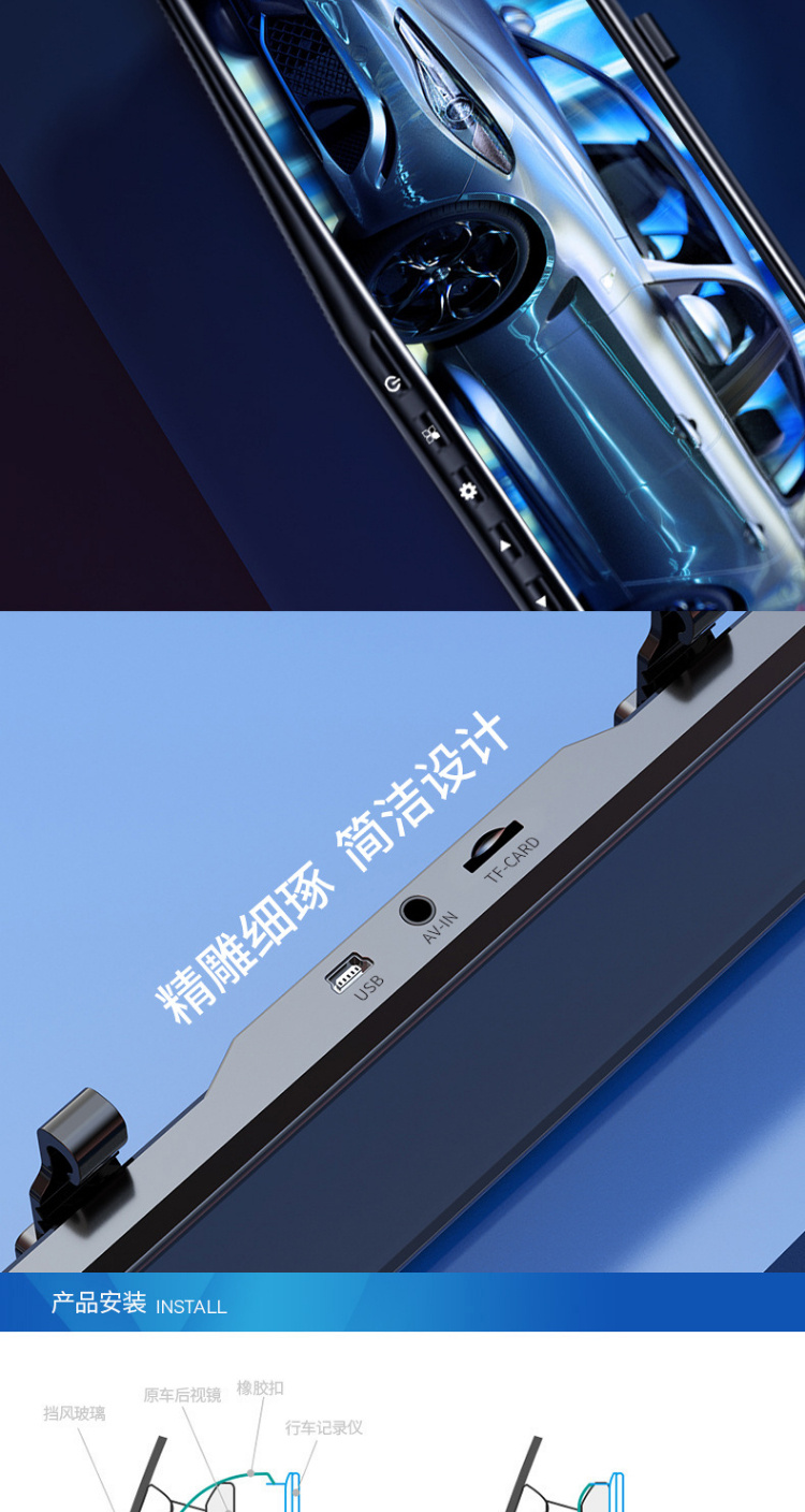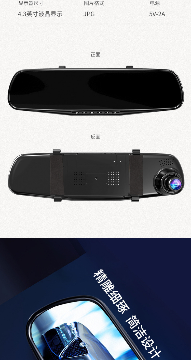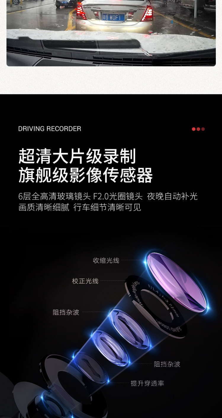 【行车记录仪】汽车载后视镜行车记录仪高清前后双镜头1080p带倒车影像电子
