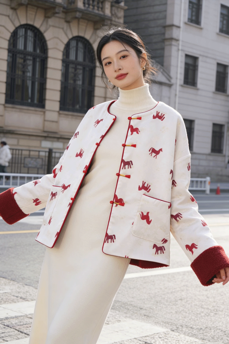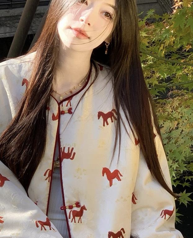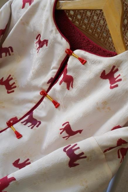 昨天穿它去奶奶家,老人家盯着直夸:“我姑娘穿这身真年轻,这小马活灵活现的,今年是马年,穿这个肯定顺顺利利。“