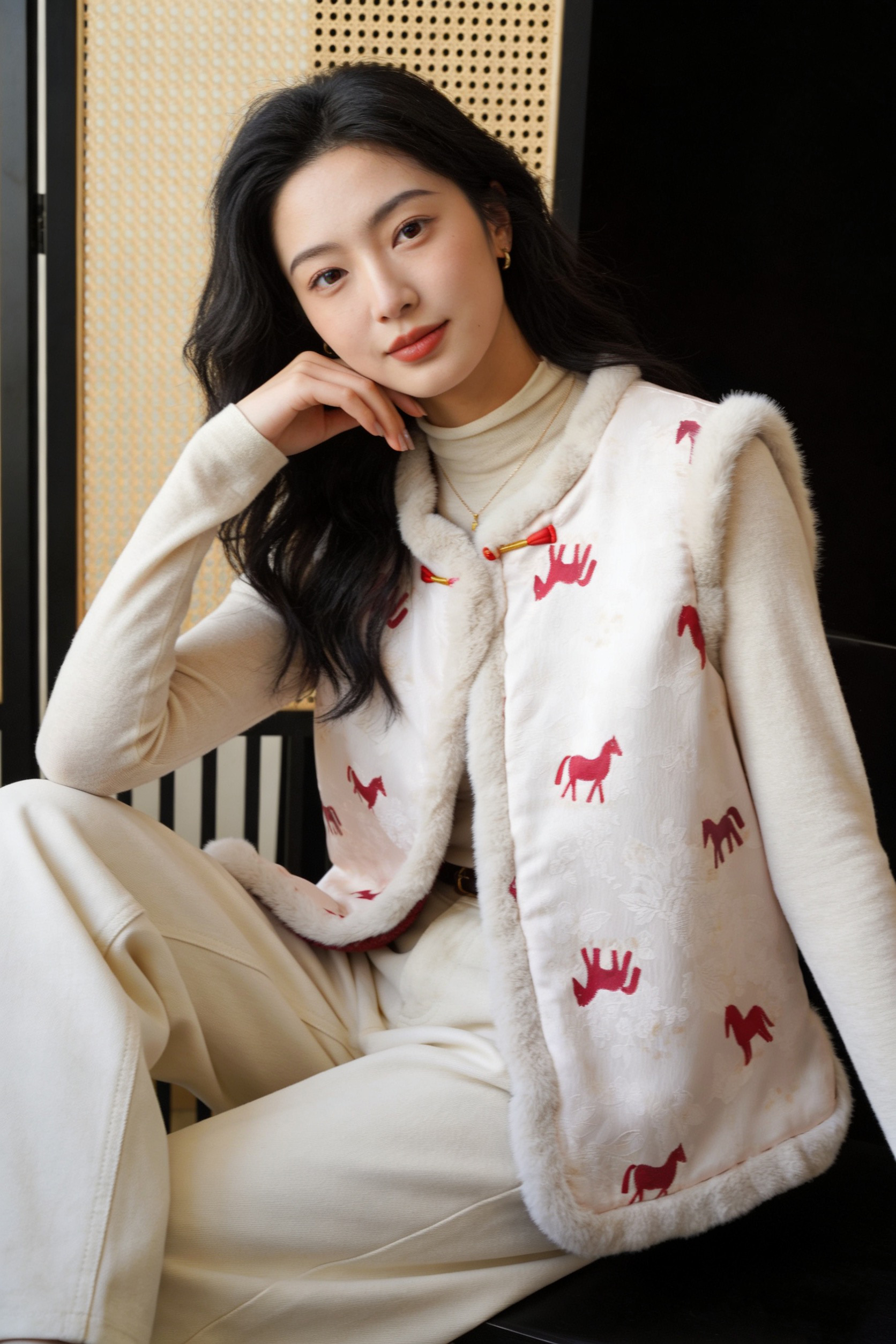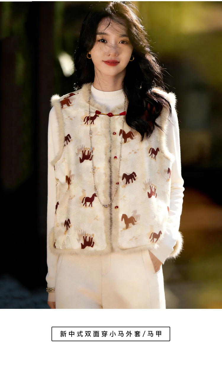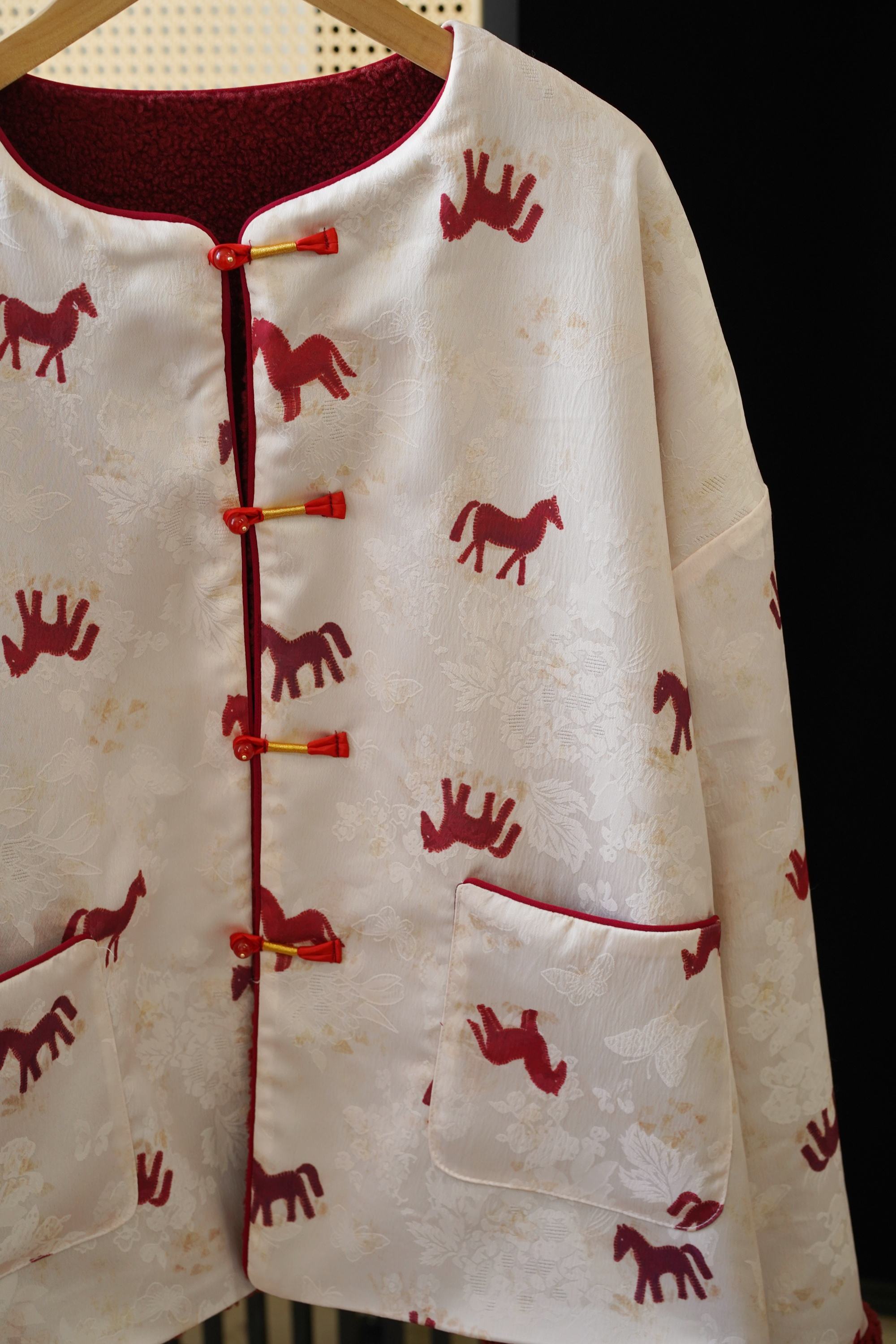 而借着骐骥红的风,一推出便爆火出圈的,是这款【新中式双面穿小马外套/马甲】。
