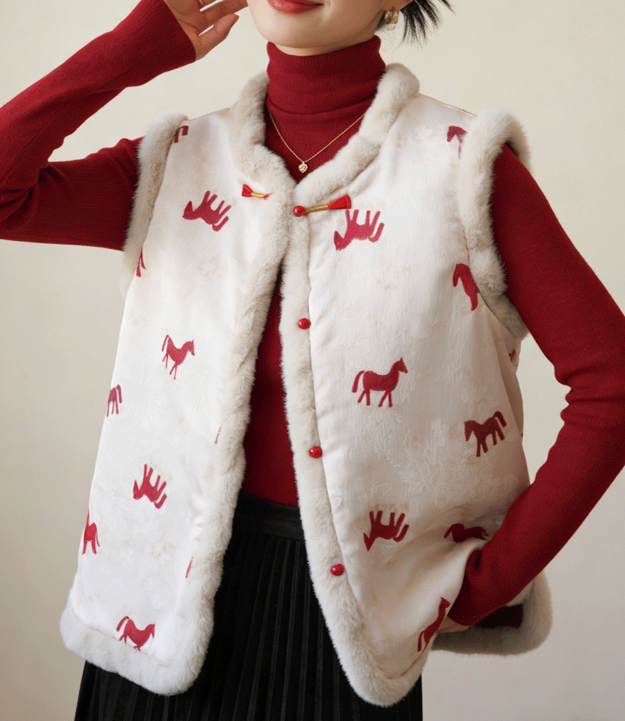 新中式双面穿小马外套/马甲 ,爆火“骐骥红”与新中式碰撞,甜贵优雅,太美了!【3-7天发货,周末顺延】【G】