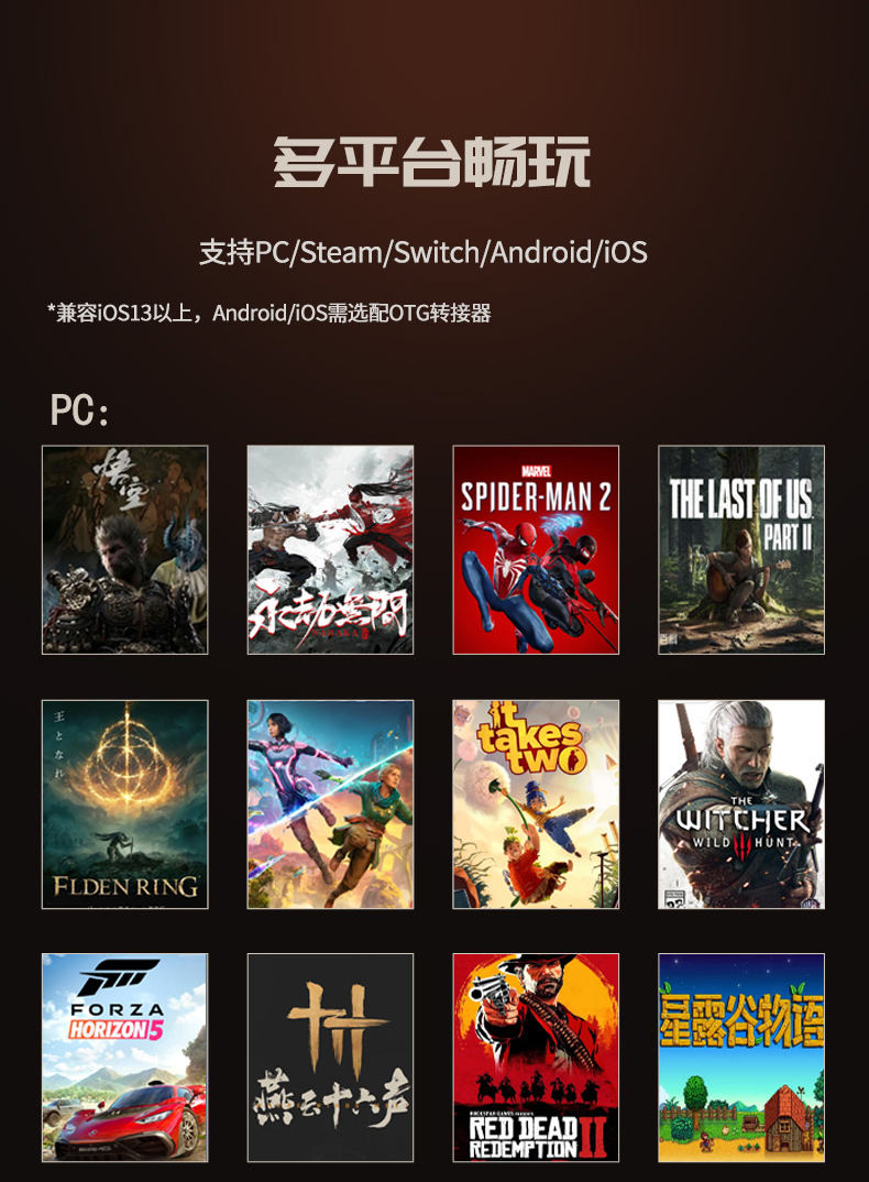 盖世小鸡灵狐有线游戏手柄pc电脑版steam霍尔ps5对称架构ds4平替格斗街机复古适用switch苹果安卓手机笔记本