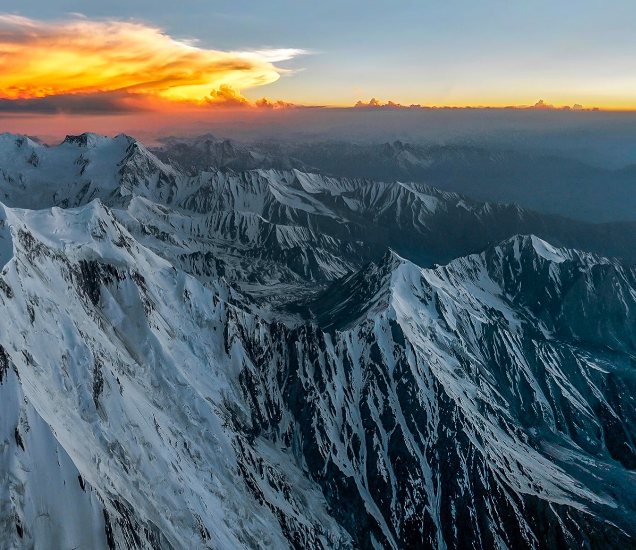 刀锋般巨大的岩石山体,远古巨兽般蛰伏的绵延冰川。