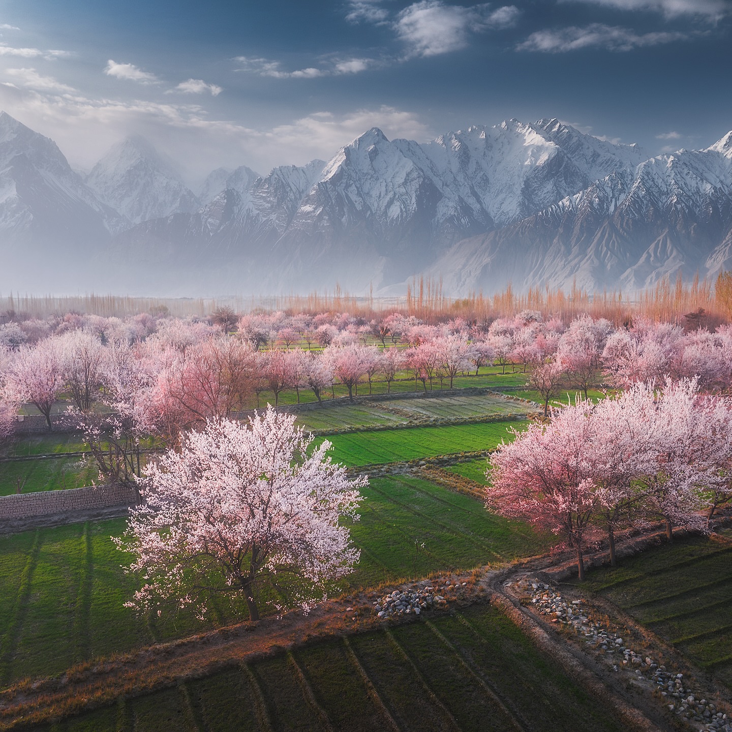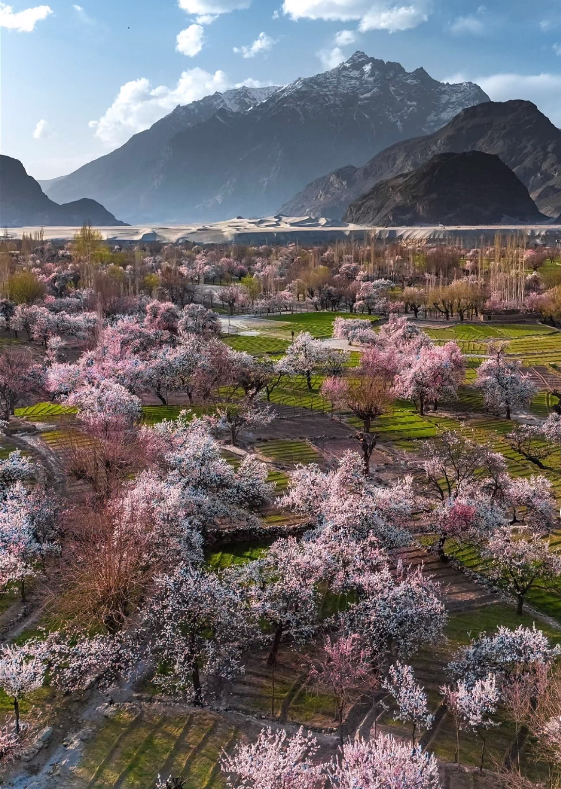 当世界坠入雪季的尾声,罕萨把整片春天挂上了喀喇昆仑的悬崖。