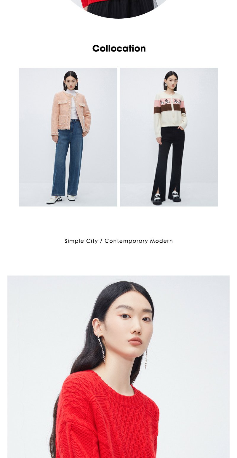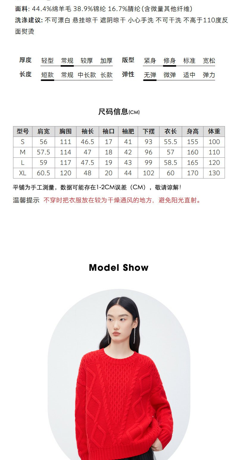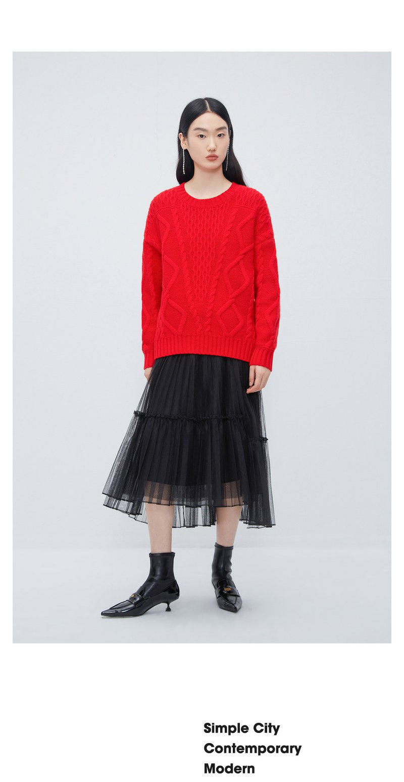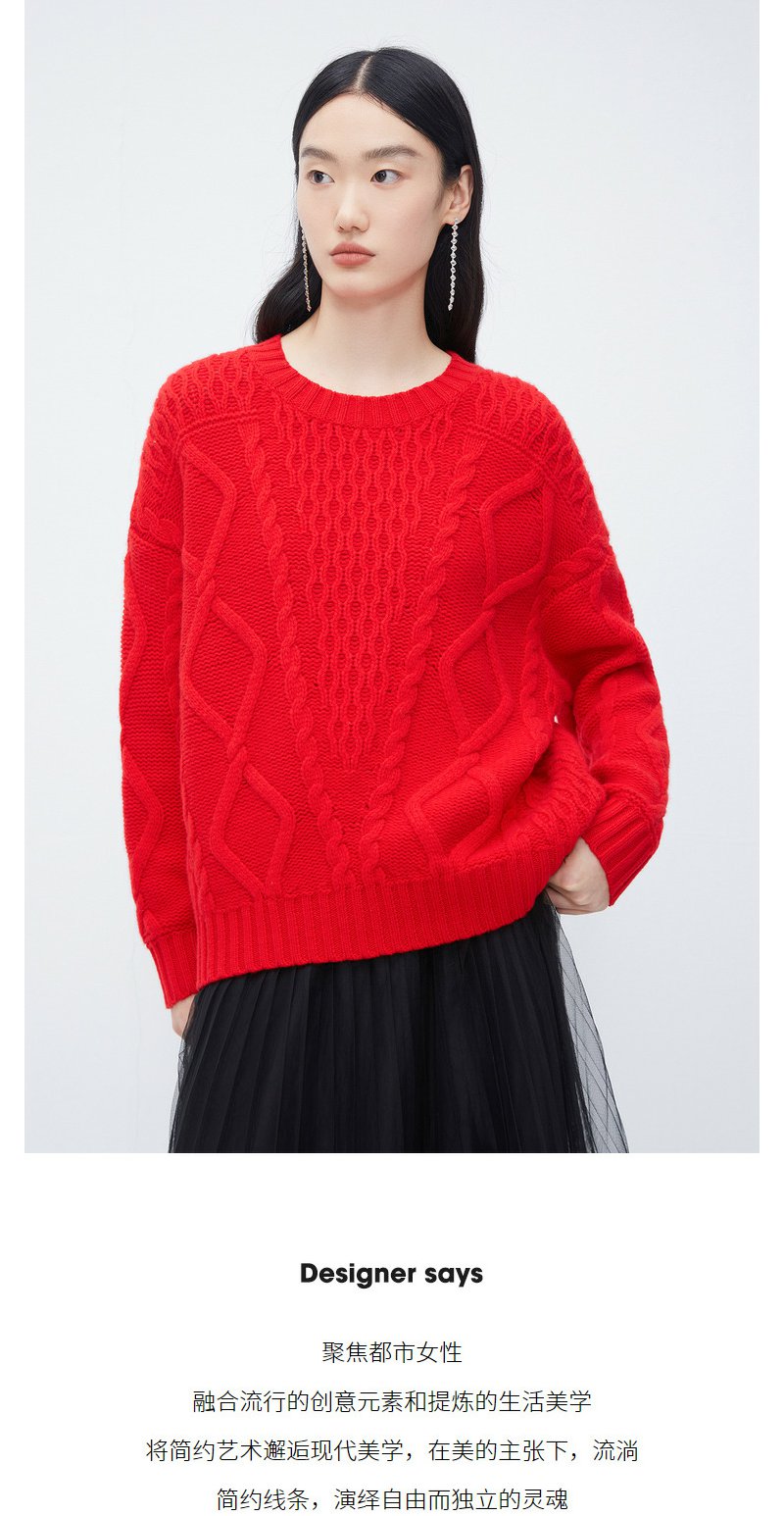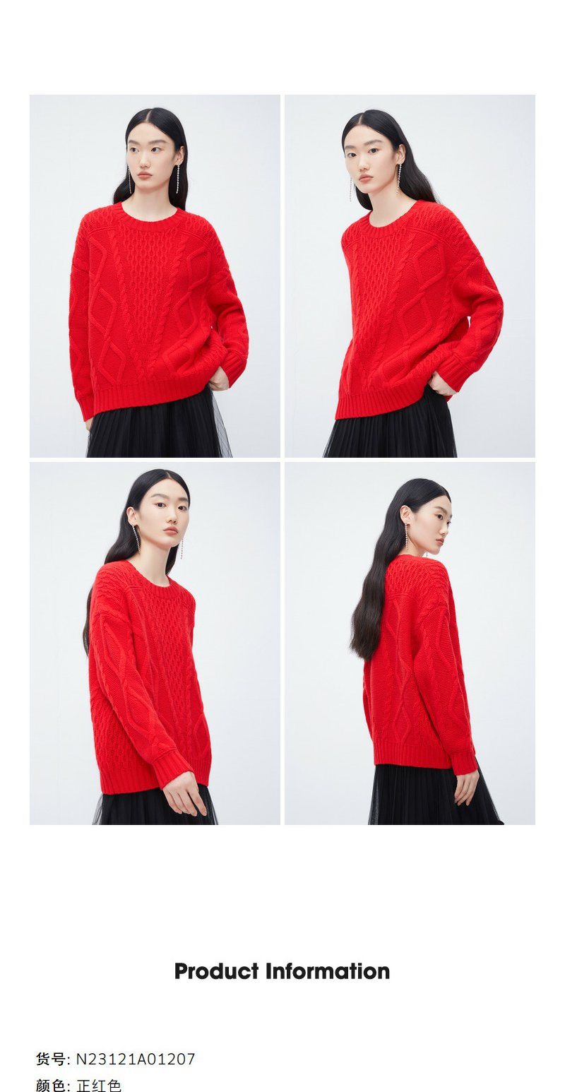 NEELLY纳俪商场同款新年红色套头软糯毛衣女冬季宽松本命年针织衫N23121A01207