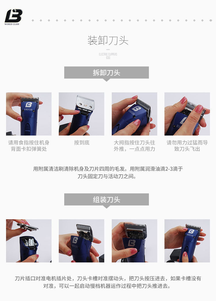 1、 适合通用刀头,不论是Laube, Andis, Wahl或Oster刀头都适用
