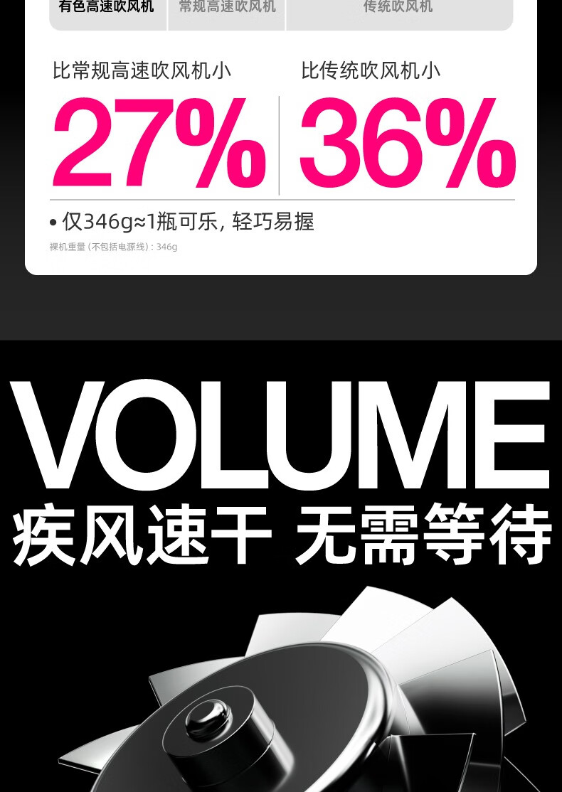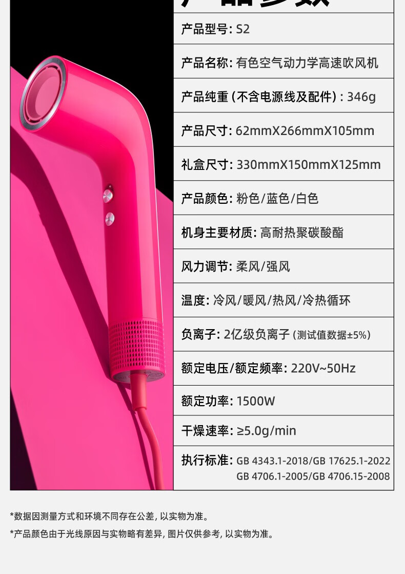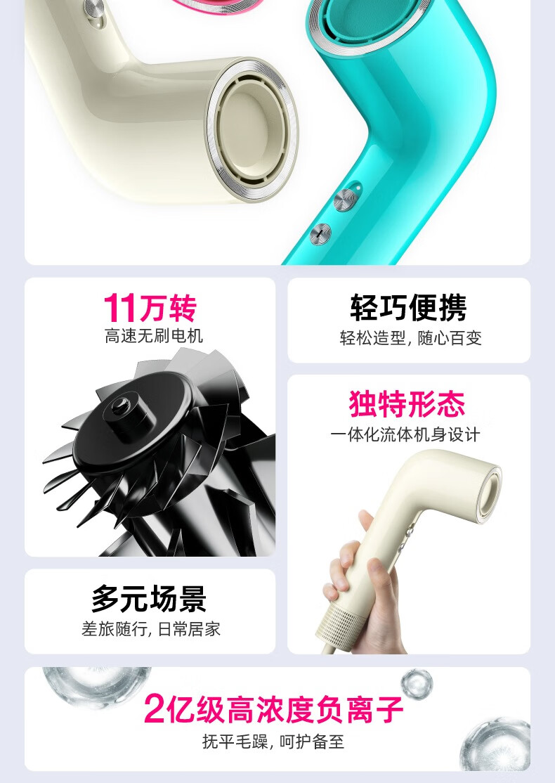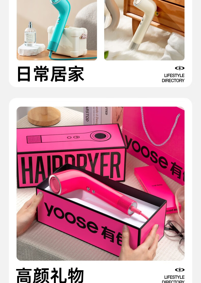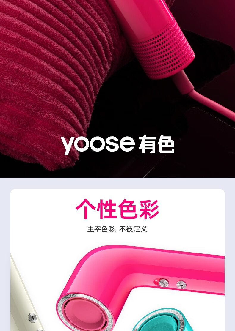 有色有色(yoose)高速吹风机 新一代家用电吹风 负离子护发 大风力速干吹风筒 送女友老婆礼物