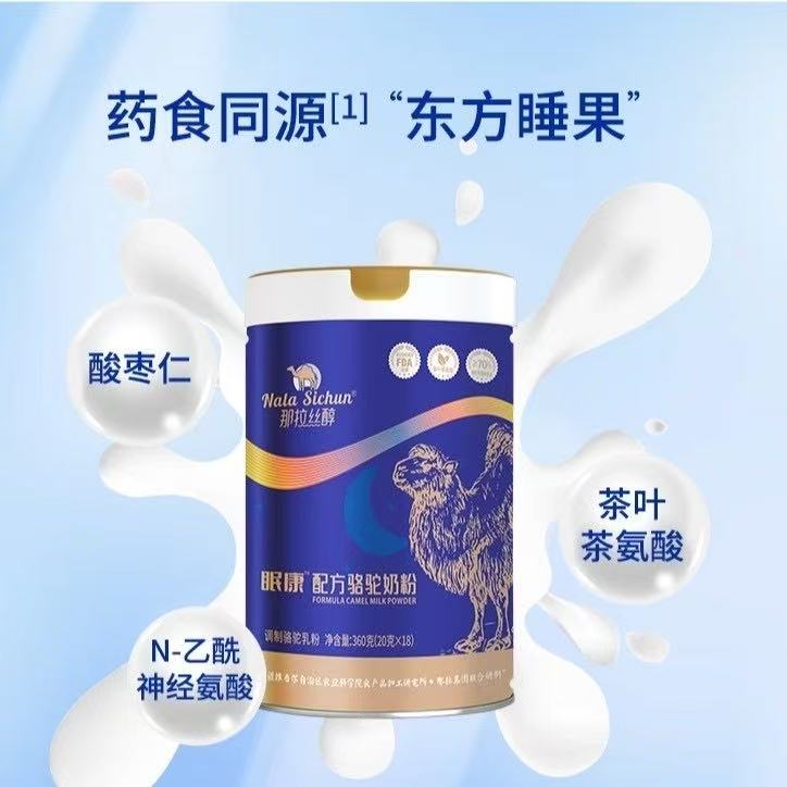 这款驼乳粉用了那拉乳业16年的眠康配方,茶叶茶氨酸+酸枣仁,双效助眠