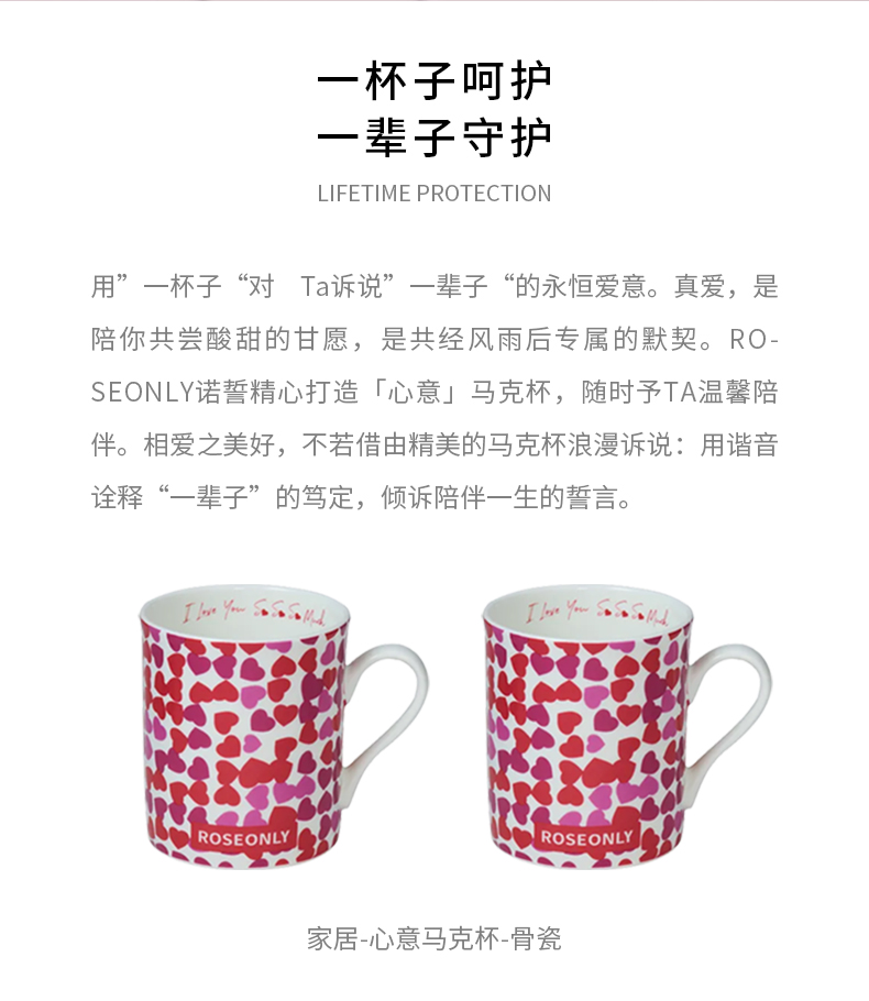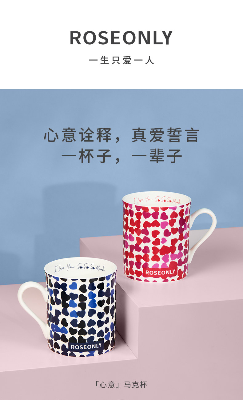 【心意马克杯】ROSEONLY诺誓 玫瑰居家 马克杯 马克杯套装 粉色蓝色 心意马克杯 马克杯套装