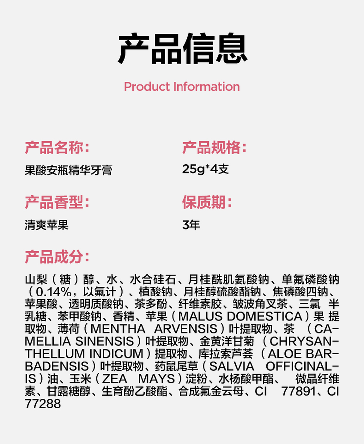 参半牙膏果酸安瓶牙齿霜清新口气牙膏(4支*25g/盒)【保质期到2025.5.22,介意慎拍】