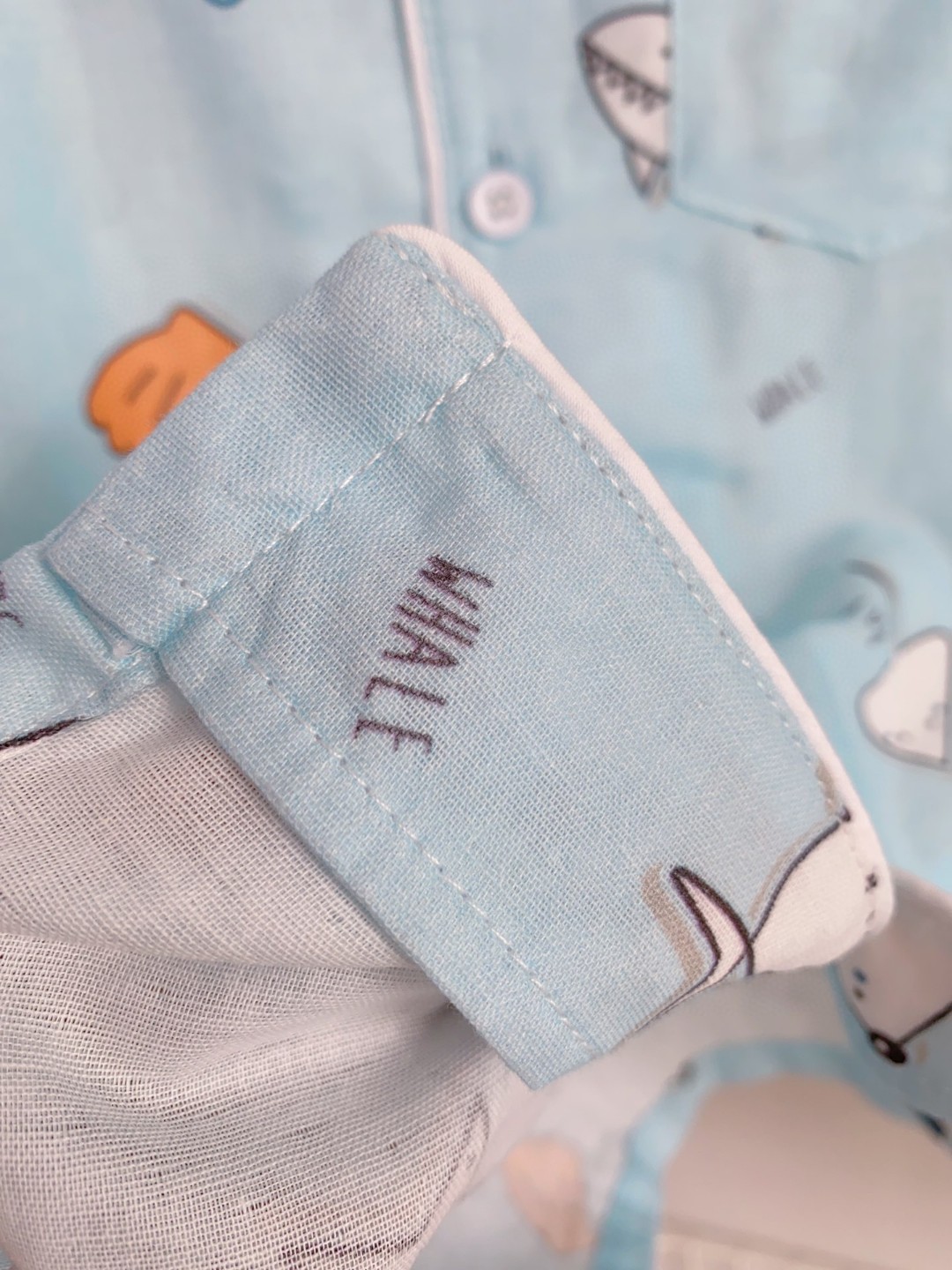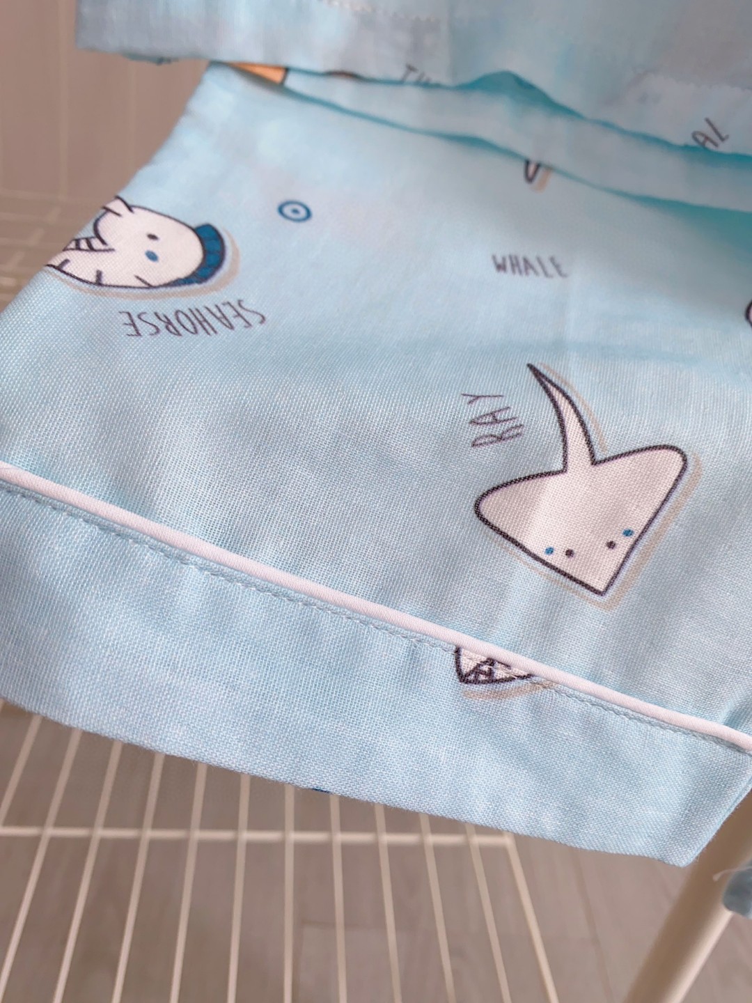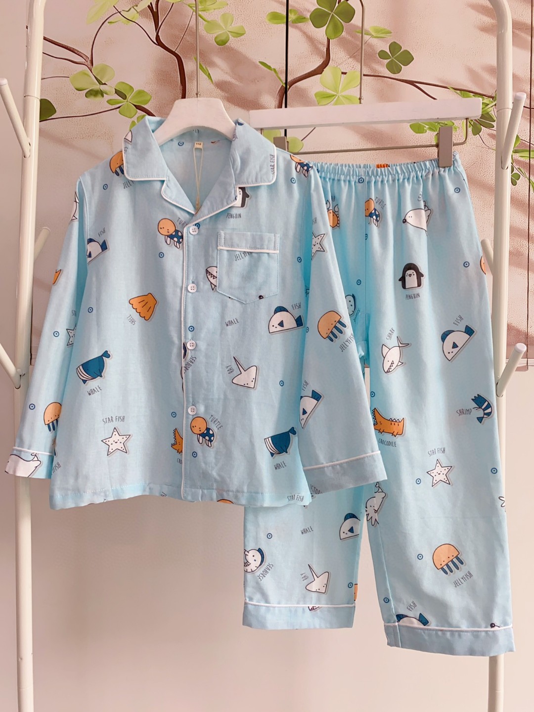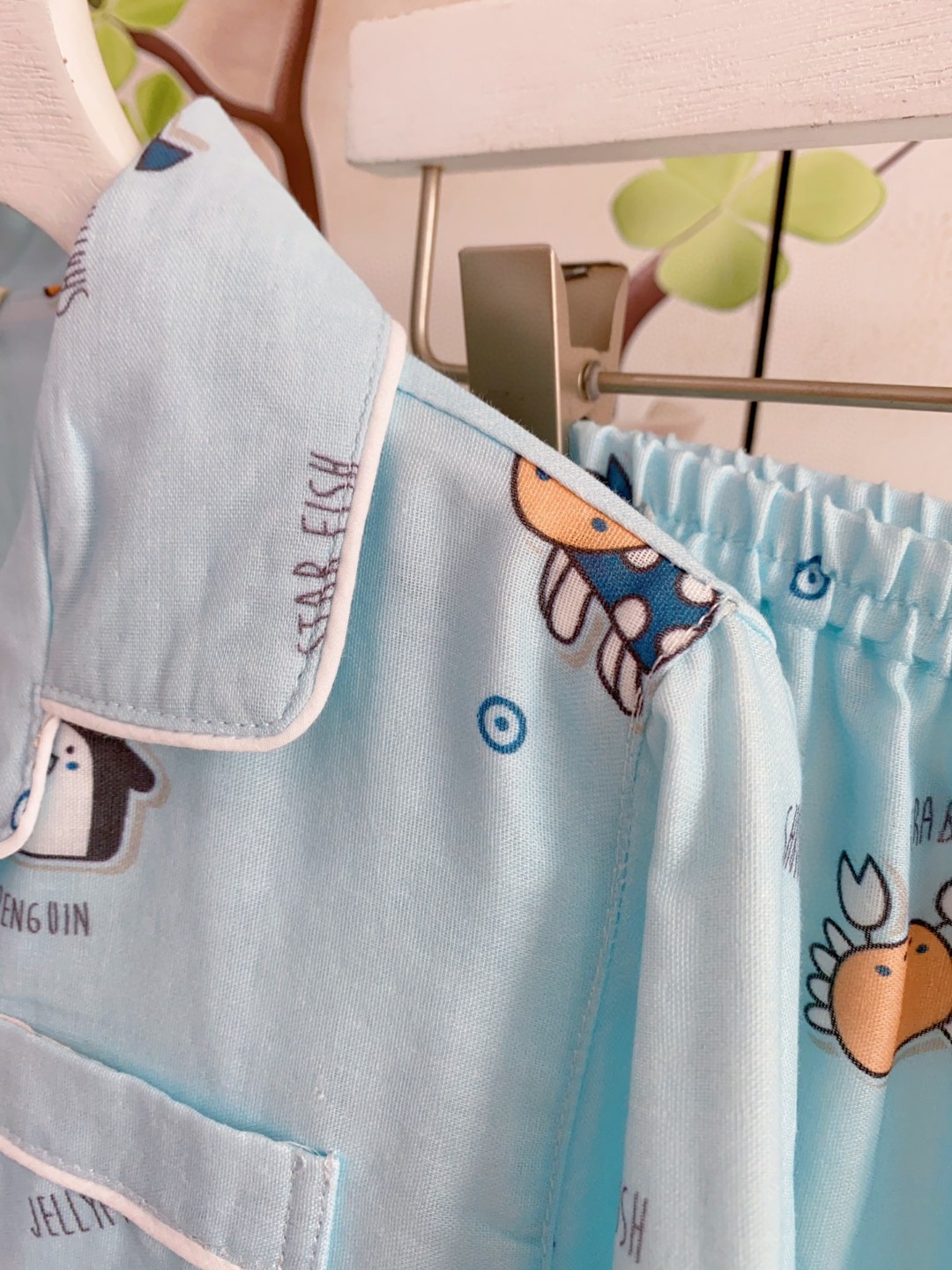 ✔️ 海底世界图案 | 活力童趣 ✔️ 小翻领设计 | 帅气有型 ✔️100%全棉双层纱 |双层纱结构蓬松透气,告别闷汗烦恼,海洋元素让宝宝爱上穿睡衣!