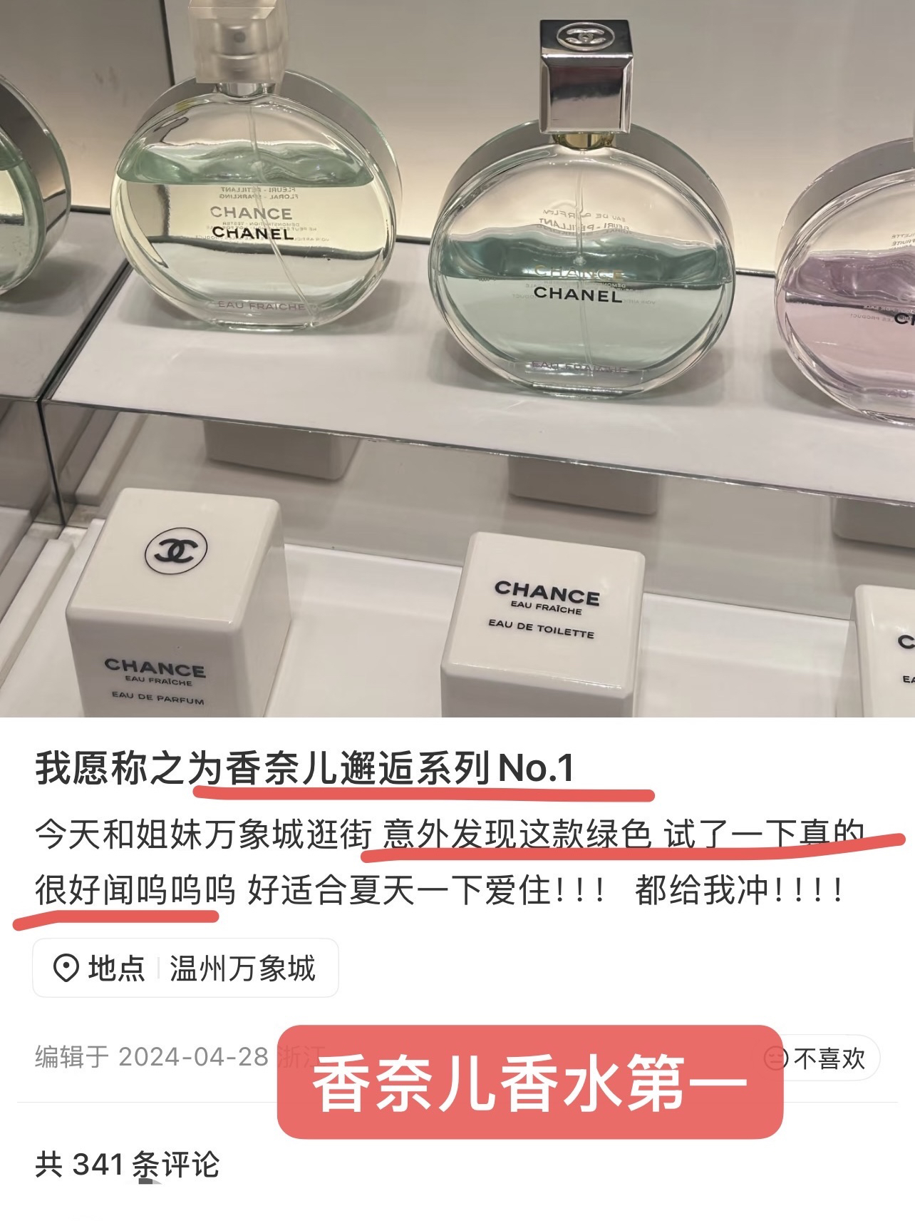 时代的眼泪但永不过时! 香奈儿100ml礼盒版绿邂逅淡香水