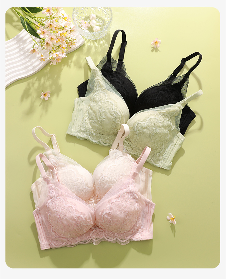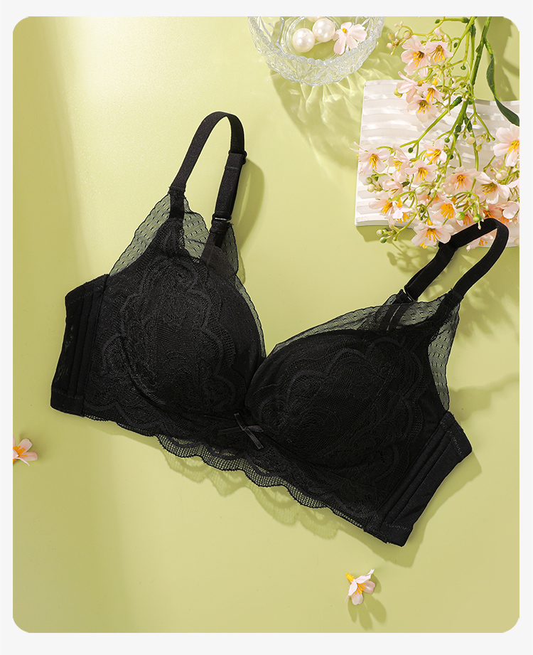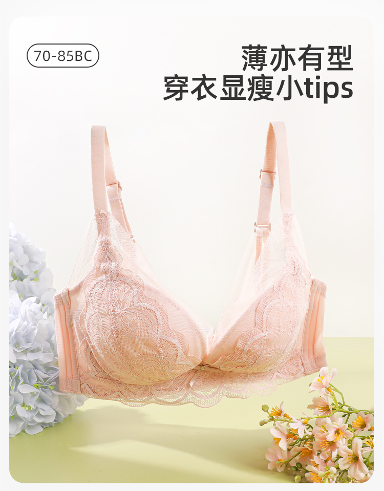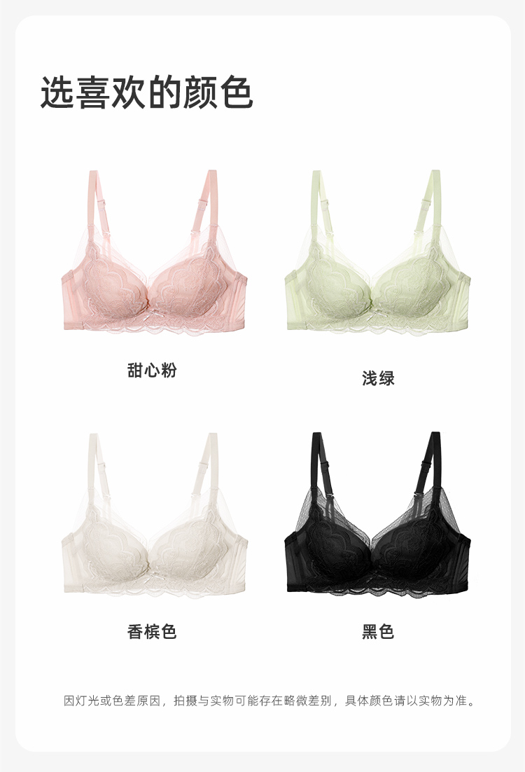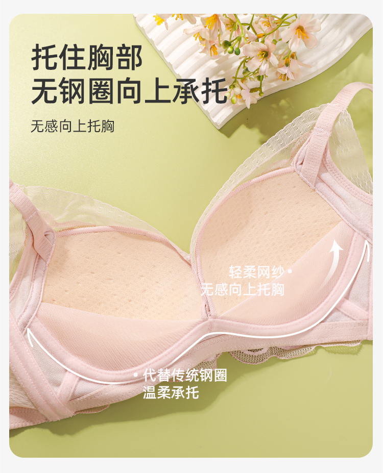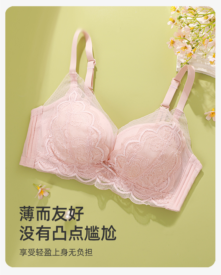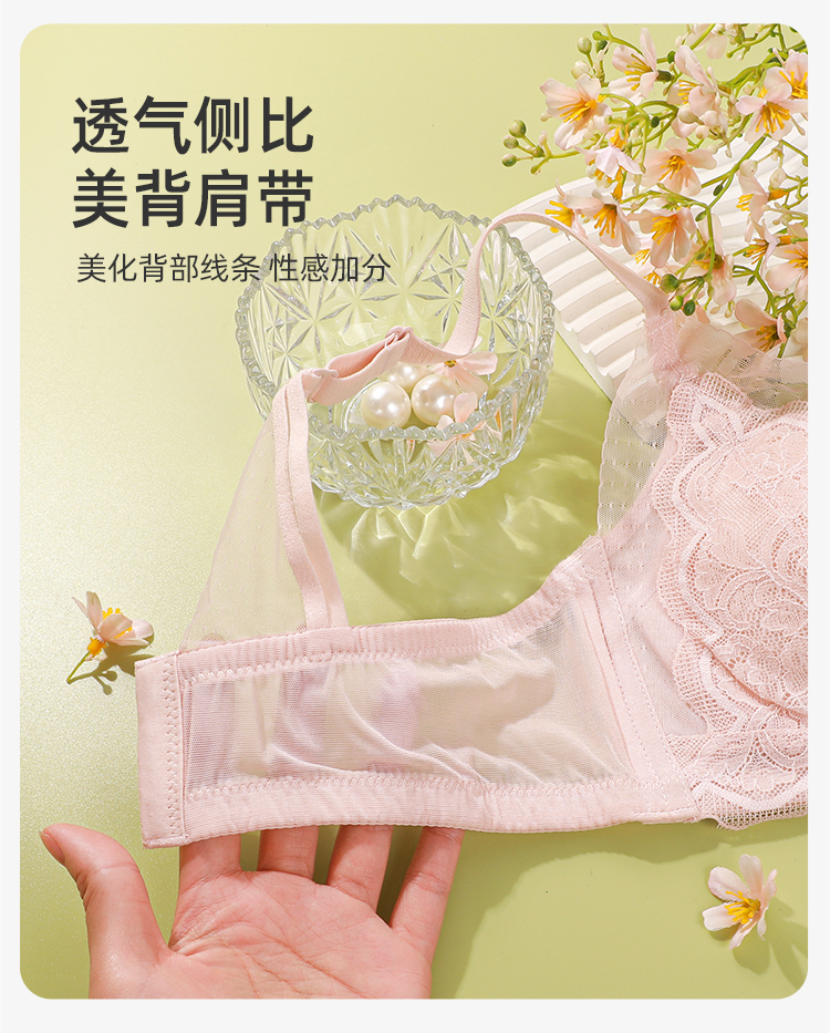 【大胸显小BC杯】熳洁儿 性感蕾丝薄款双层网纱无钢圈文胸22261501