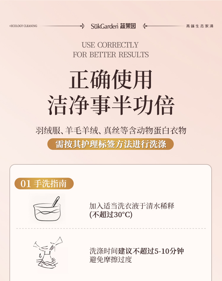 新升级【蔬果园高档羊绒真丝洗衣乳液】专业级别护理 生态酵素配方 天然无有害添加,99.9%除菌除螨,母婴级安心背书