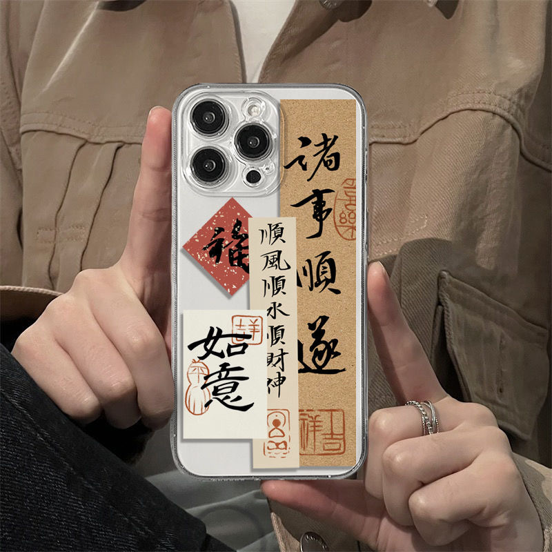 【诸事顺遂❗️顺顺顺苹果手机壳】福气上手,添福添喜,好运连连!马年新年文字苹果14promax手机壳iPhone15 16 17/13国风12软壳11潮14pro
