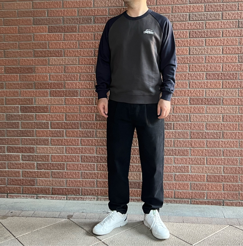 试穿舒服!价格不好品质品质非常不错!高棉含量确保柔软细腻的肤感,纤维的加入,支撑起成衣的骨架,上身挺括有型,水洗处理,让布料穿着更加顺滑舒适,加密螺纹领口加固,细节增添看点,撞色插肩长袖,袖口采用螺纹收省,更显利落随性。