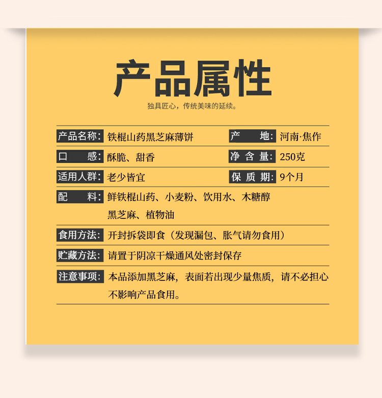 【补贴拍1发4盒】60%铁棍山药黑芝麻饼250g/盒 0添加蔗糖健康零食