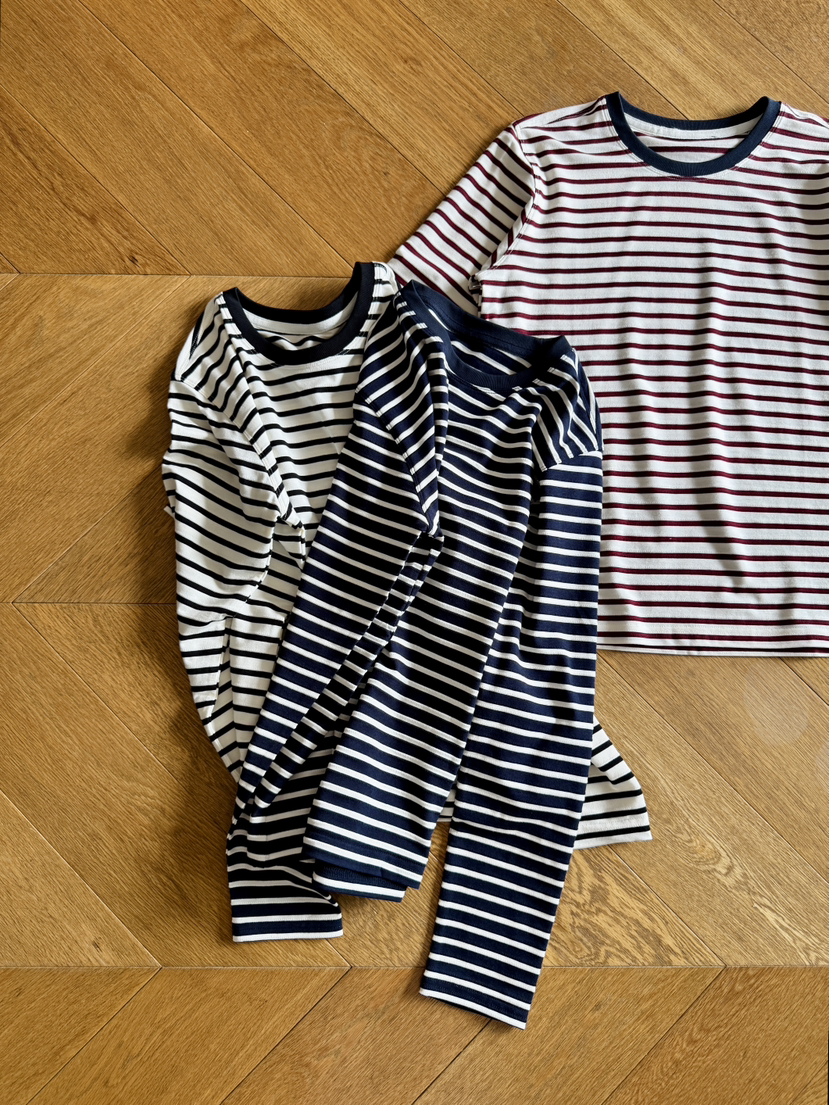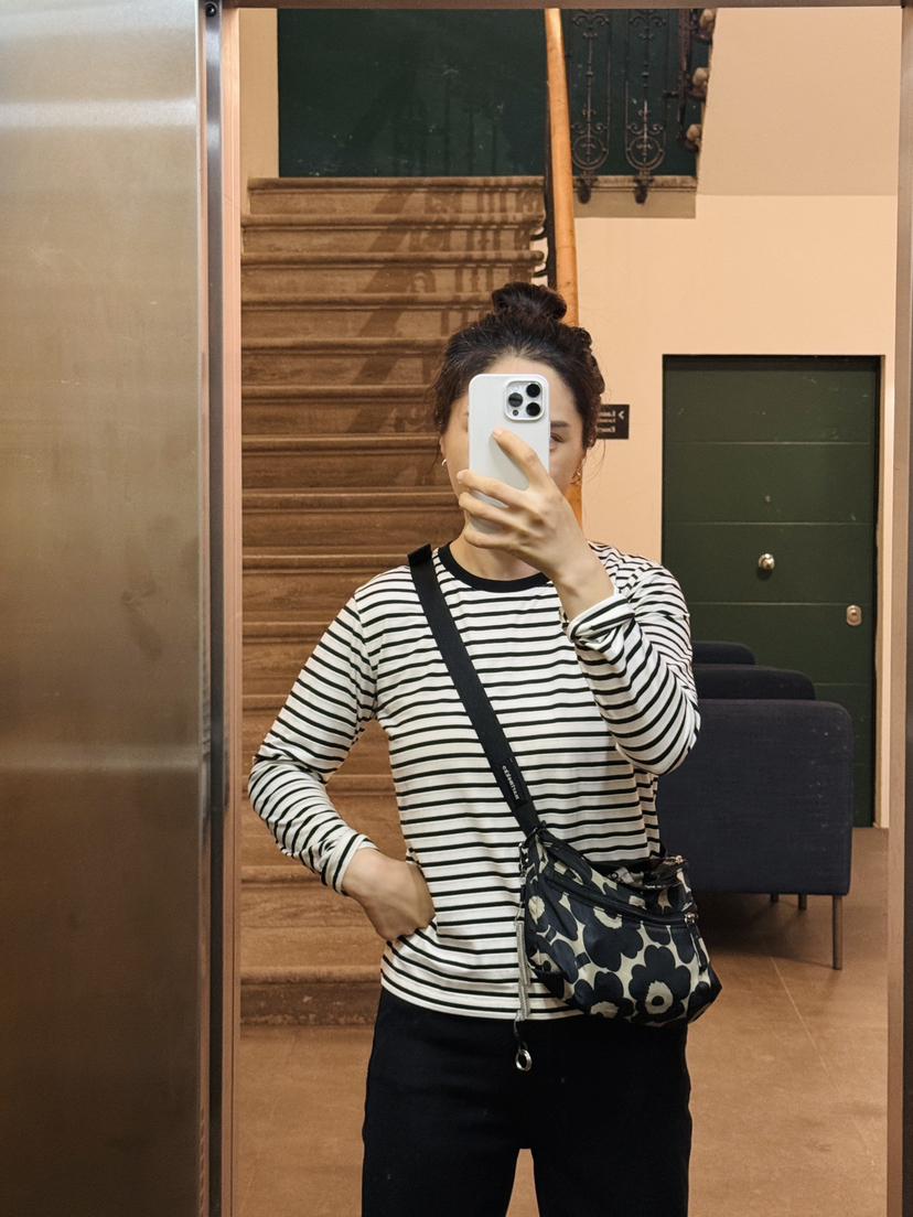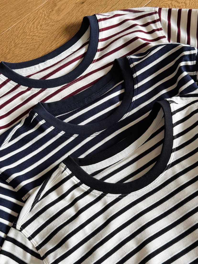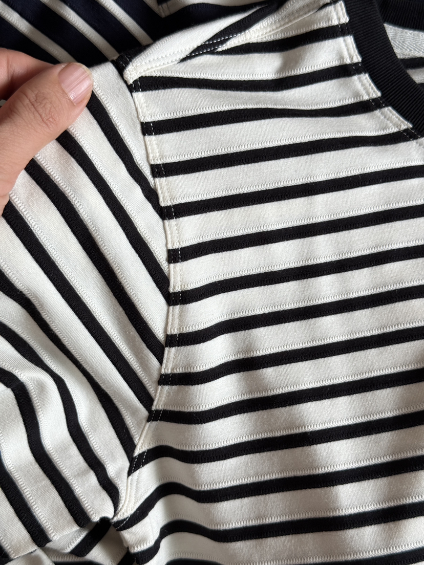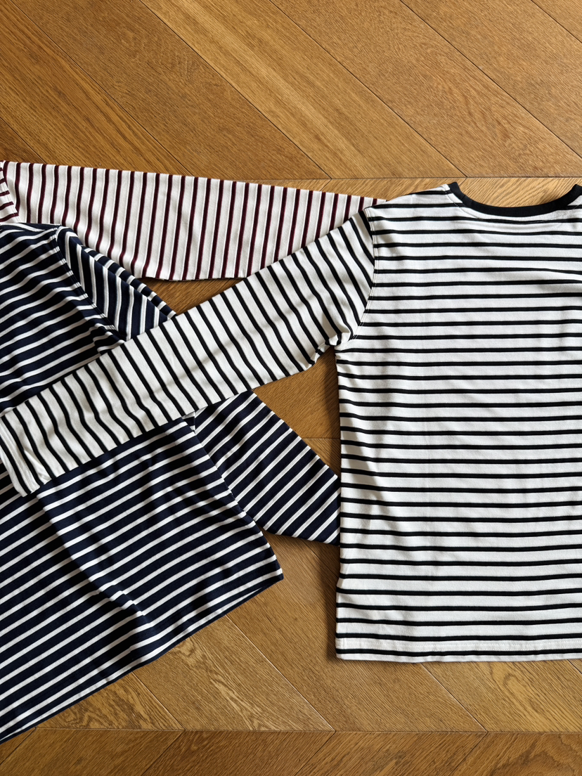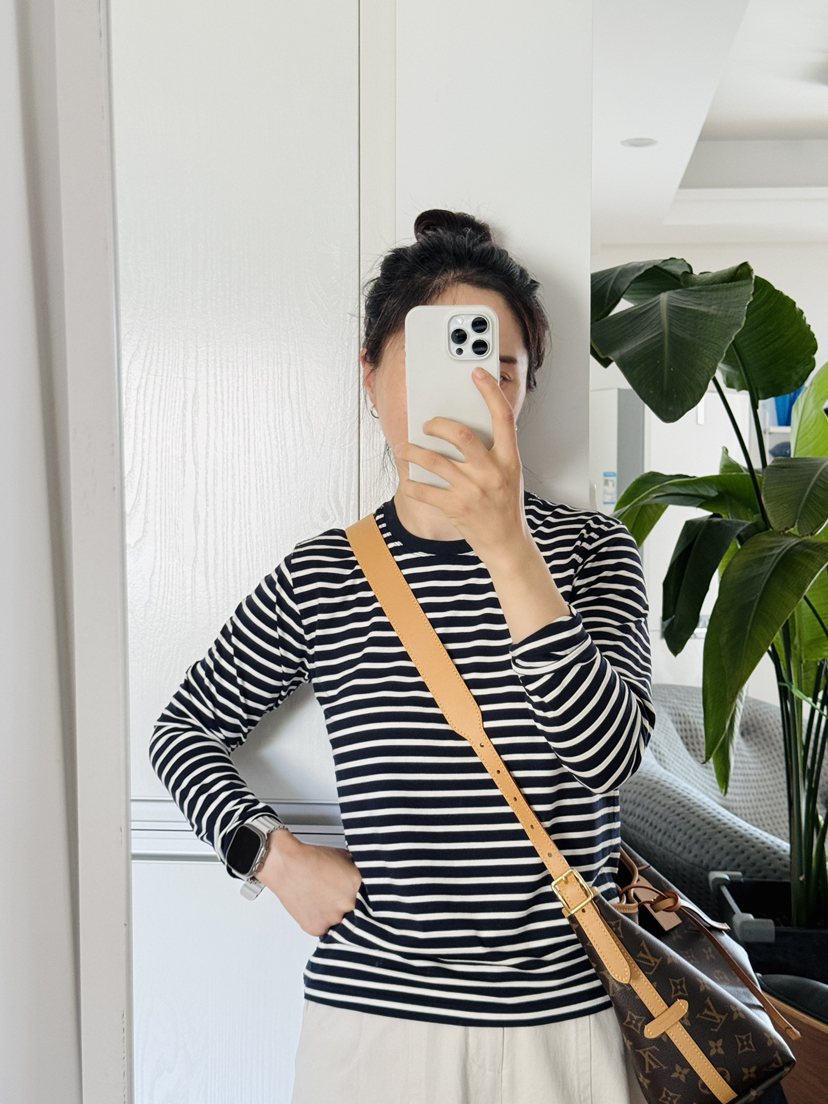 row长袖T的版型做了一款条纹衫,正肩合身款,面料软弹舒服!轻松穿出空间感~能感受到的恰到好处的闲适调性,包容各种身形,同时隐藏腰腹多余肉感,无论是小个子还是微胖身材,驾驭起来都没有难度压力,万年不过时的撞色条纹,款式是万年的经典款!