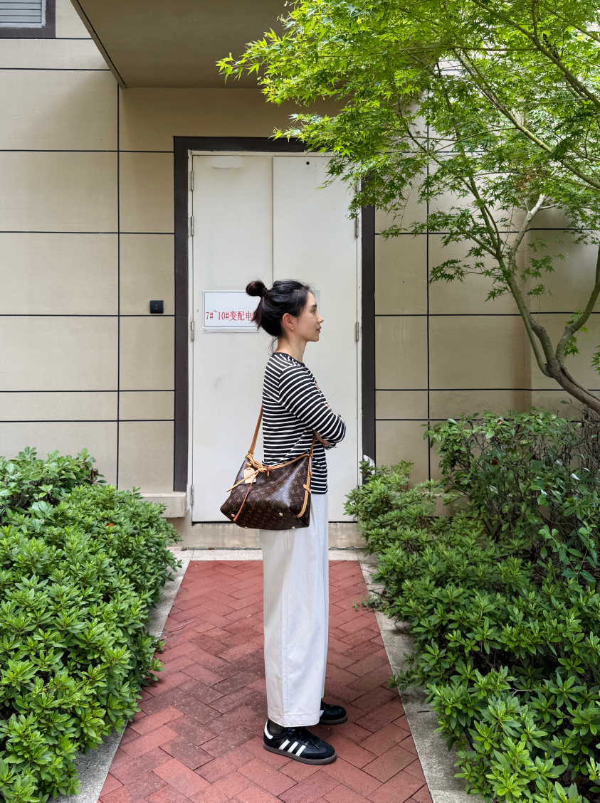 正宗地道的法式色织条纹,带一点暗花纹肌理,上身显白又百搭,而且有讲究的条纹上身不显胖 ,简约、轻松、自在、自信
