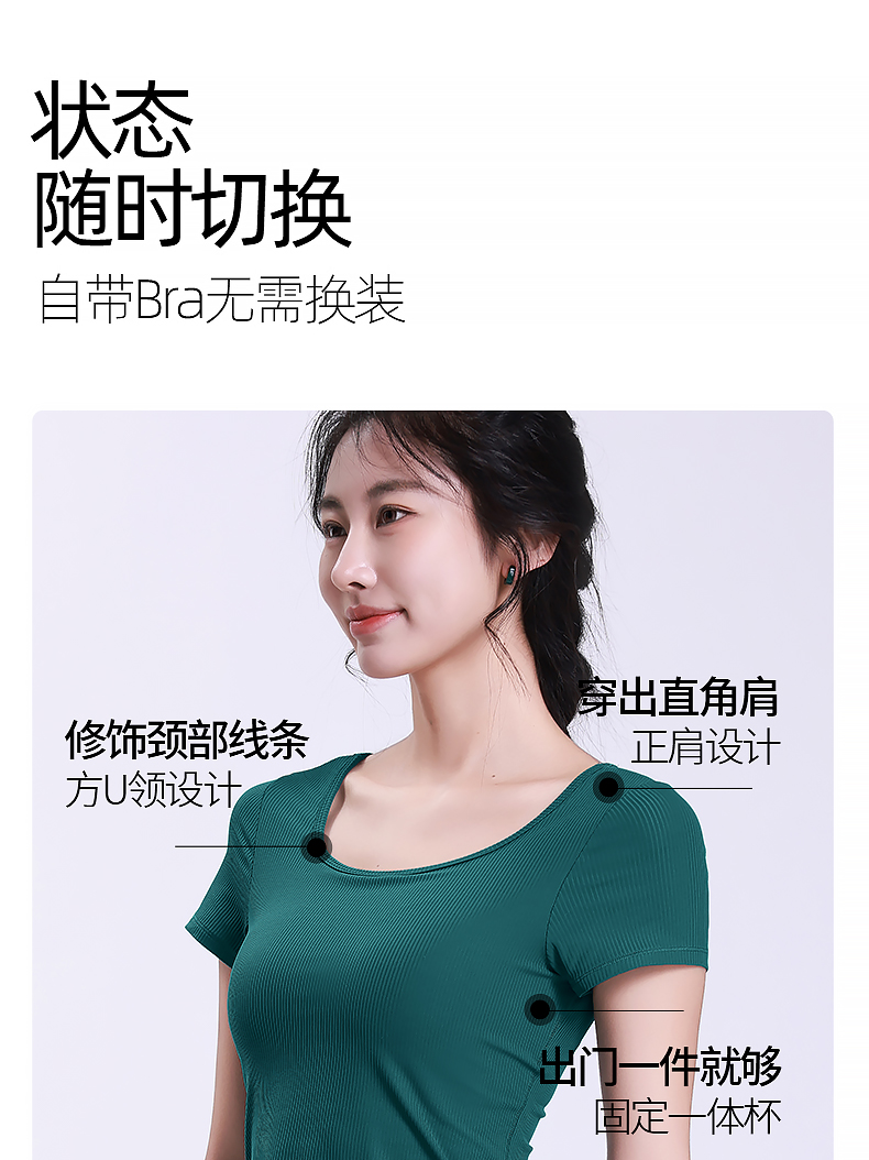 梵美人 F1206 瑜伽短袖 人鱼条 一体胸垫 背扣 人鱼条