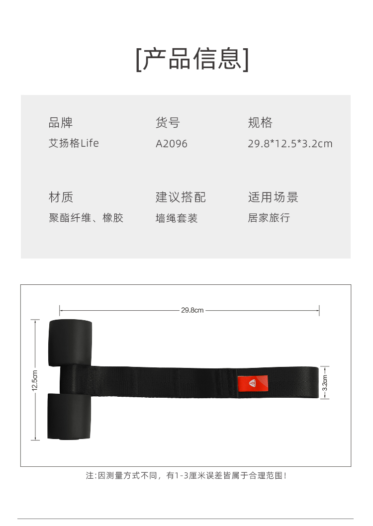 艾扬格 Life便携式墙钩(一对) 门用墙绳挂钩 卡门式墙钩配件 便携旅行墙钩套餐