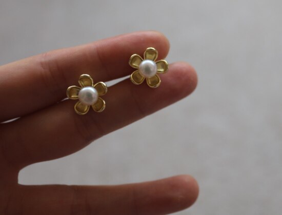 馒头小白珠 6.5mm左右 因金色花瓣立体照过来 仔细看 其实珠光是粉白的