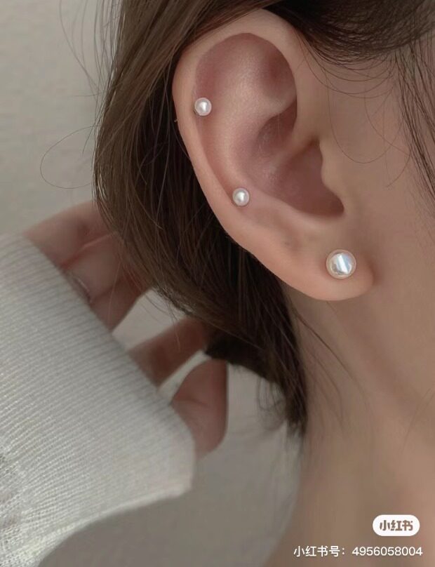 款一 小白珠的素钉 典型Baby珠那种 5-5.5mm 耳针是纯银的