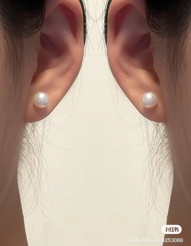 珠子 是非常突出的那种 会有一点夸张 耳堵得卡紧点 不然容易耷拉 哈~