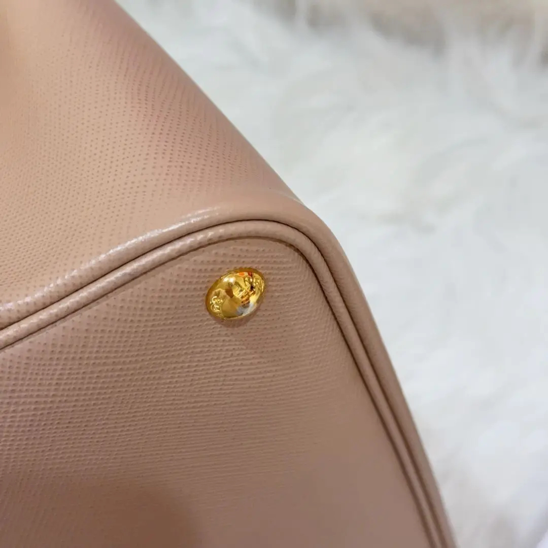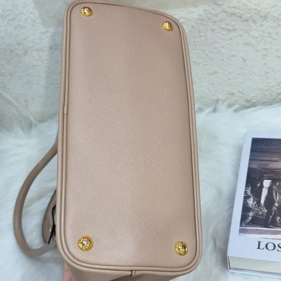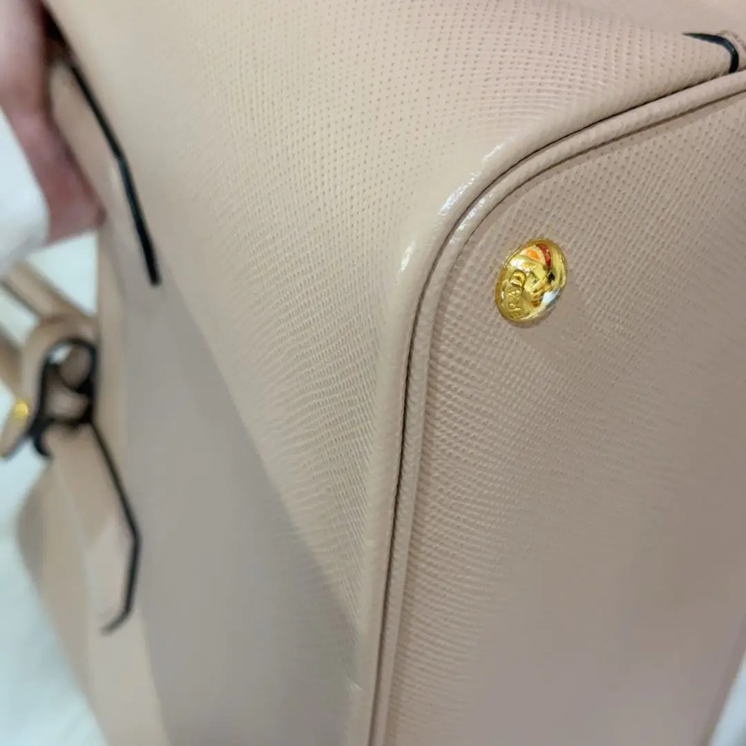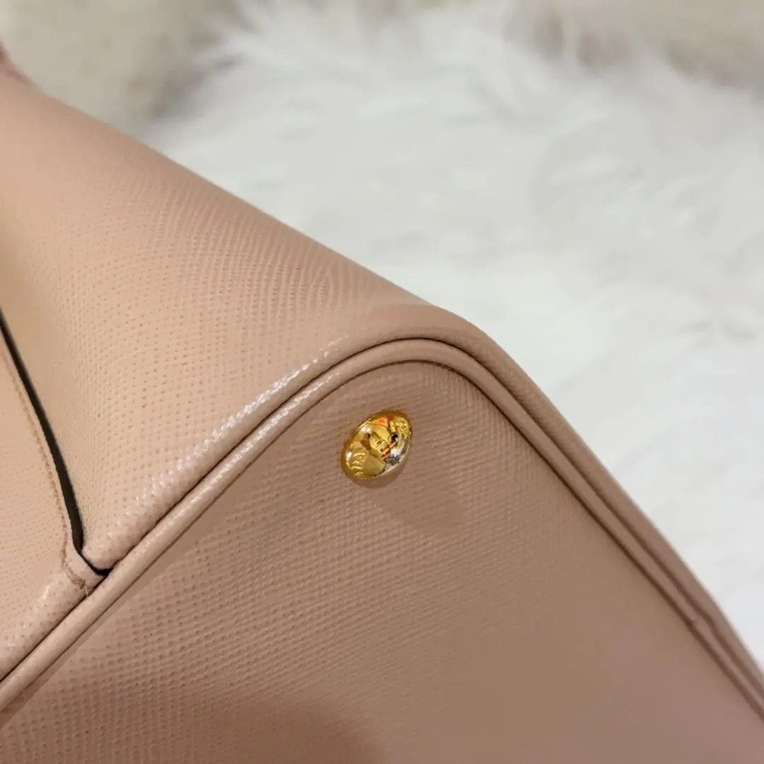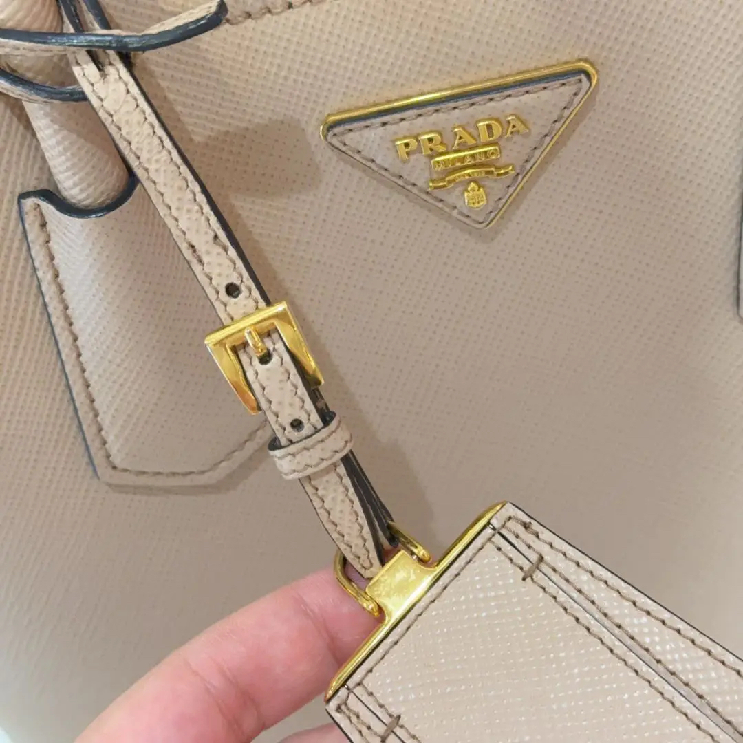 【商品详情】正品二手 Prada Galleria 十字纹牛皮 奶茶色 小号 杀手包🏜️97新 30*21 配件:挂件 肩带。防水抗刮擦