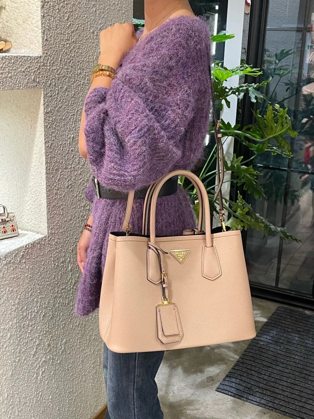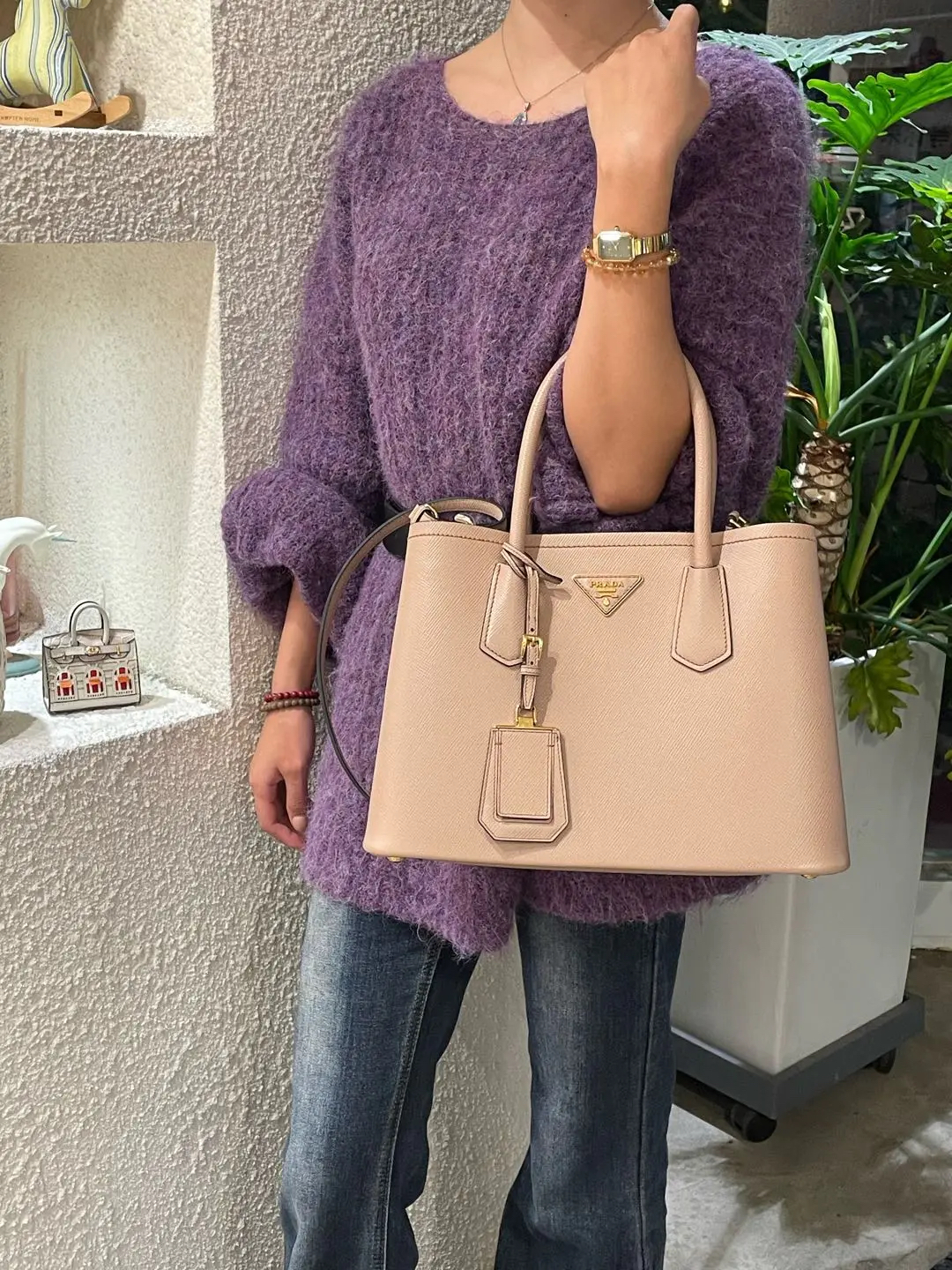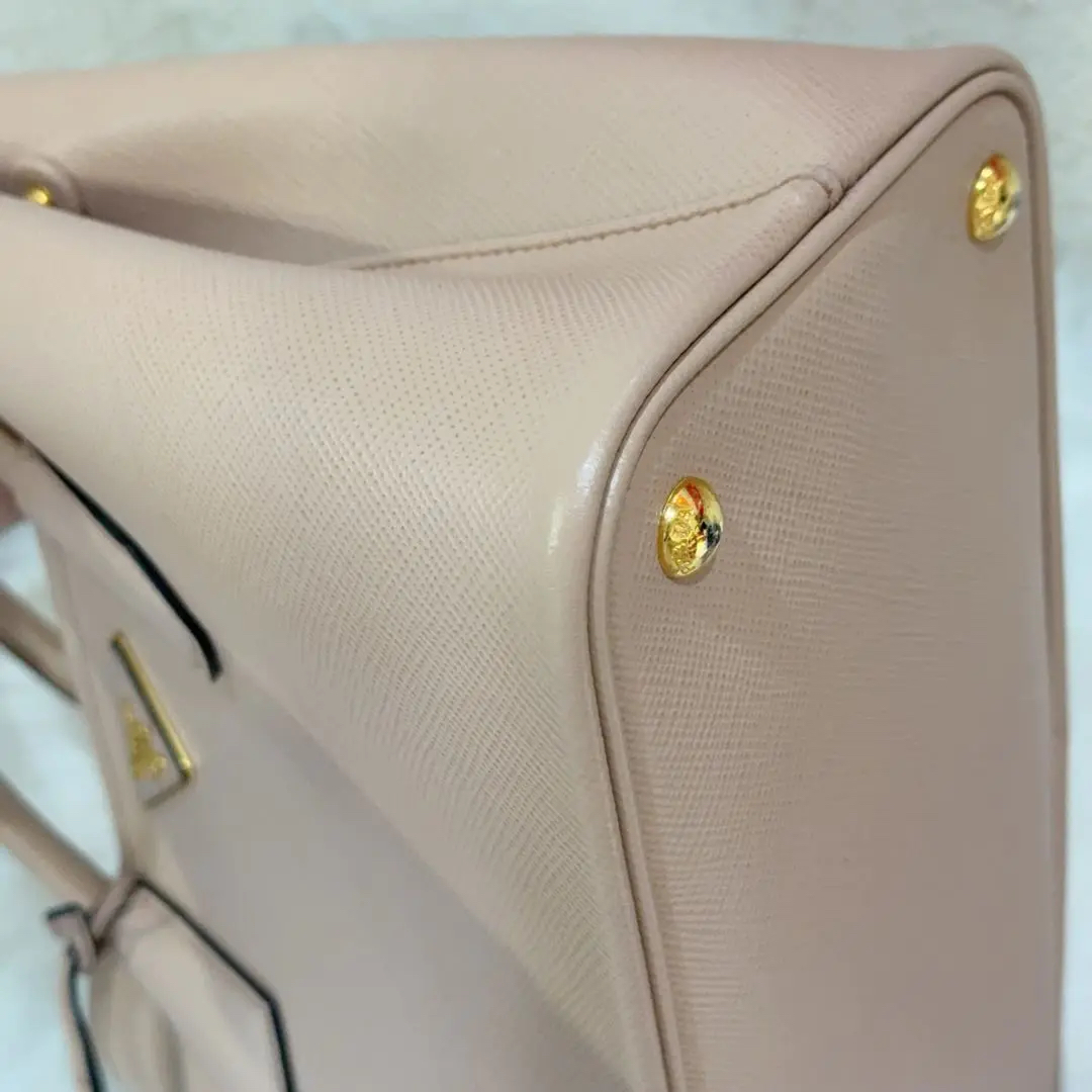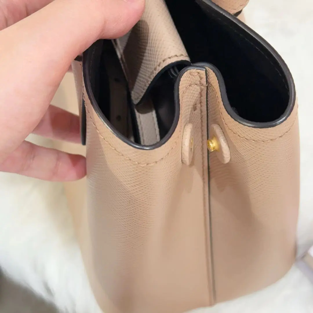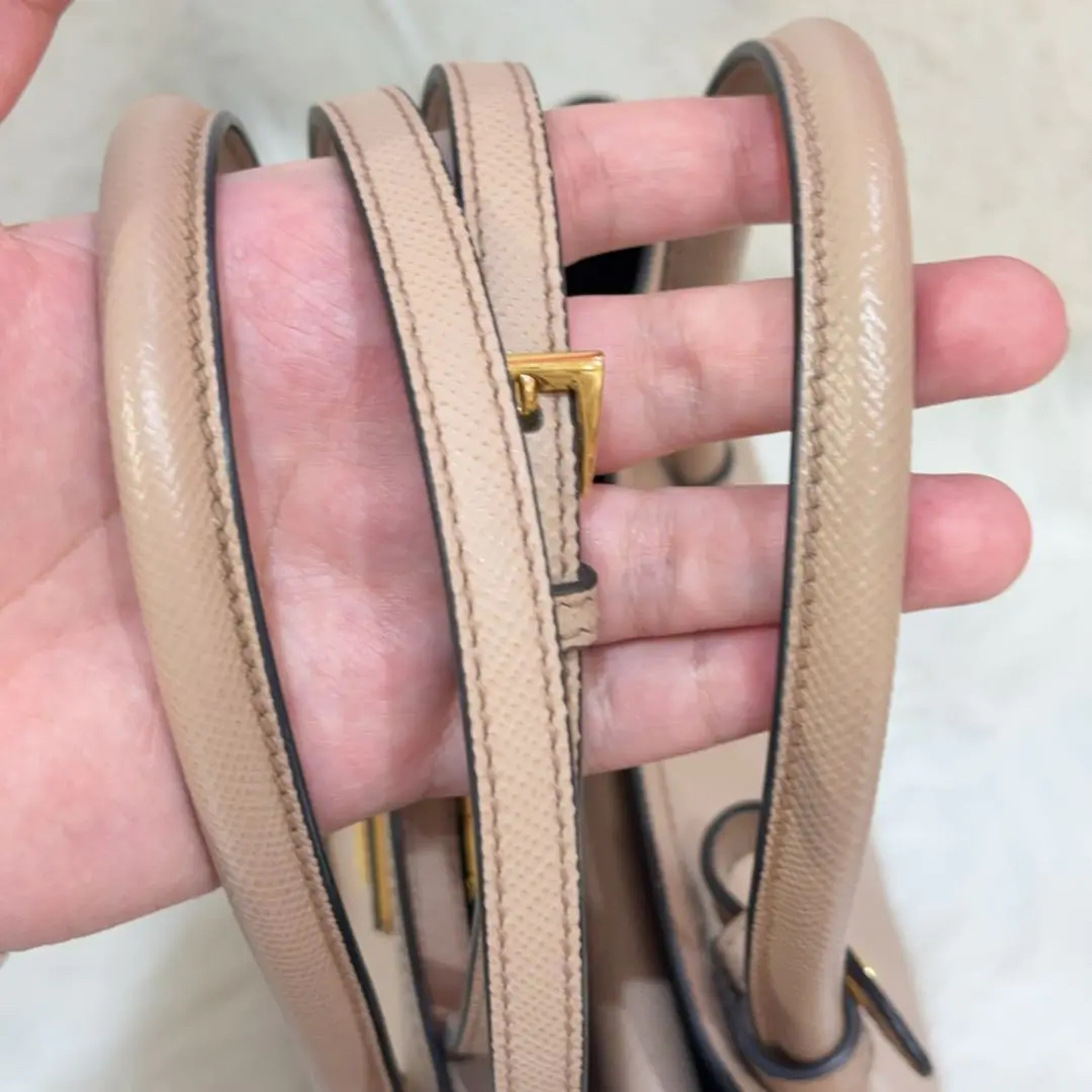 【商品详情】正品二手 Prada Galleria 十字纹牛皮 奶茶色 小号 杀手包🏜️97新 30*21 配件:挂件 肩带。防水抗刮擦
