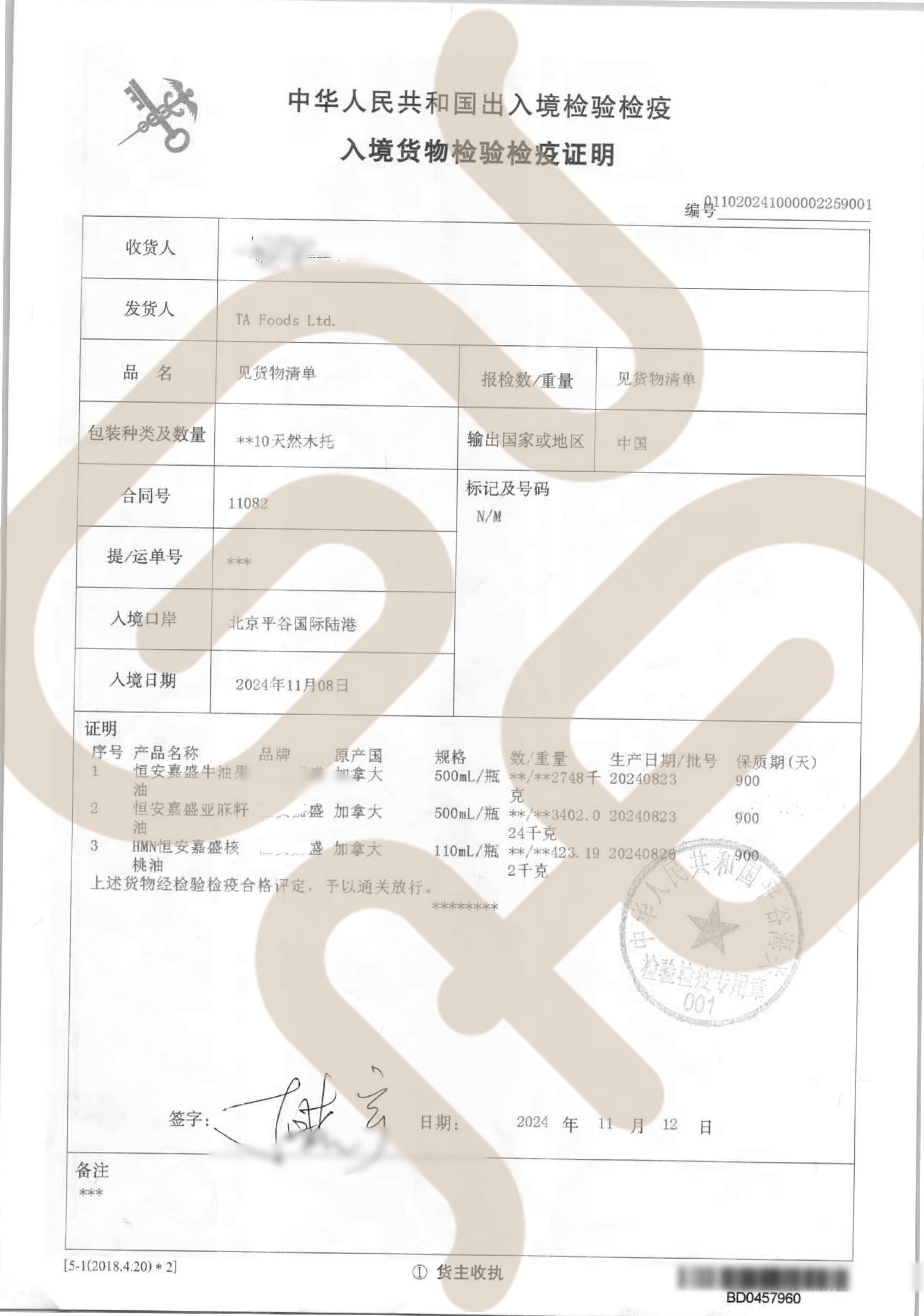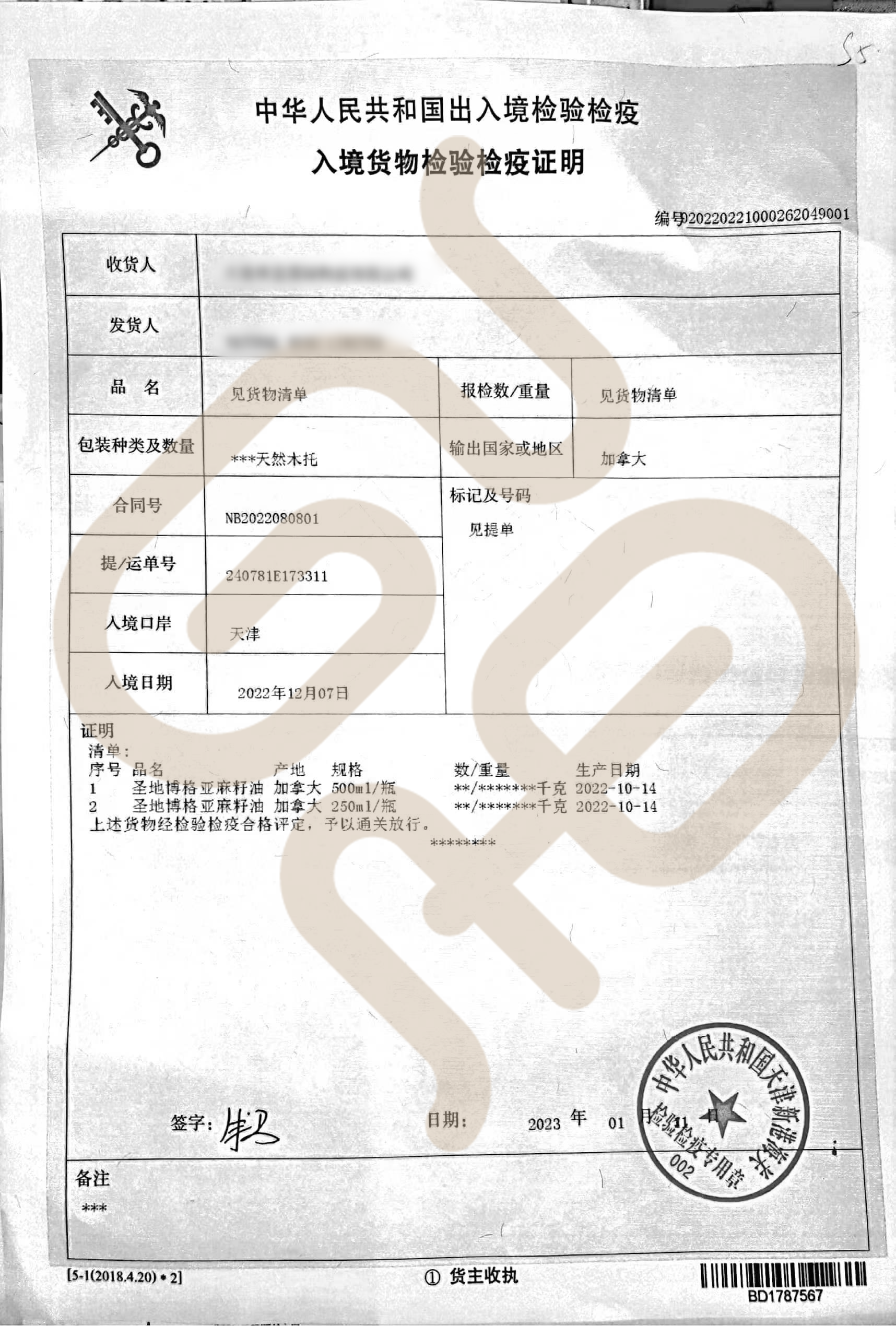 看下面的出入境检疫证明那里的[规格]