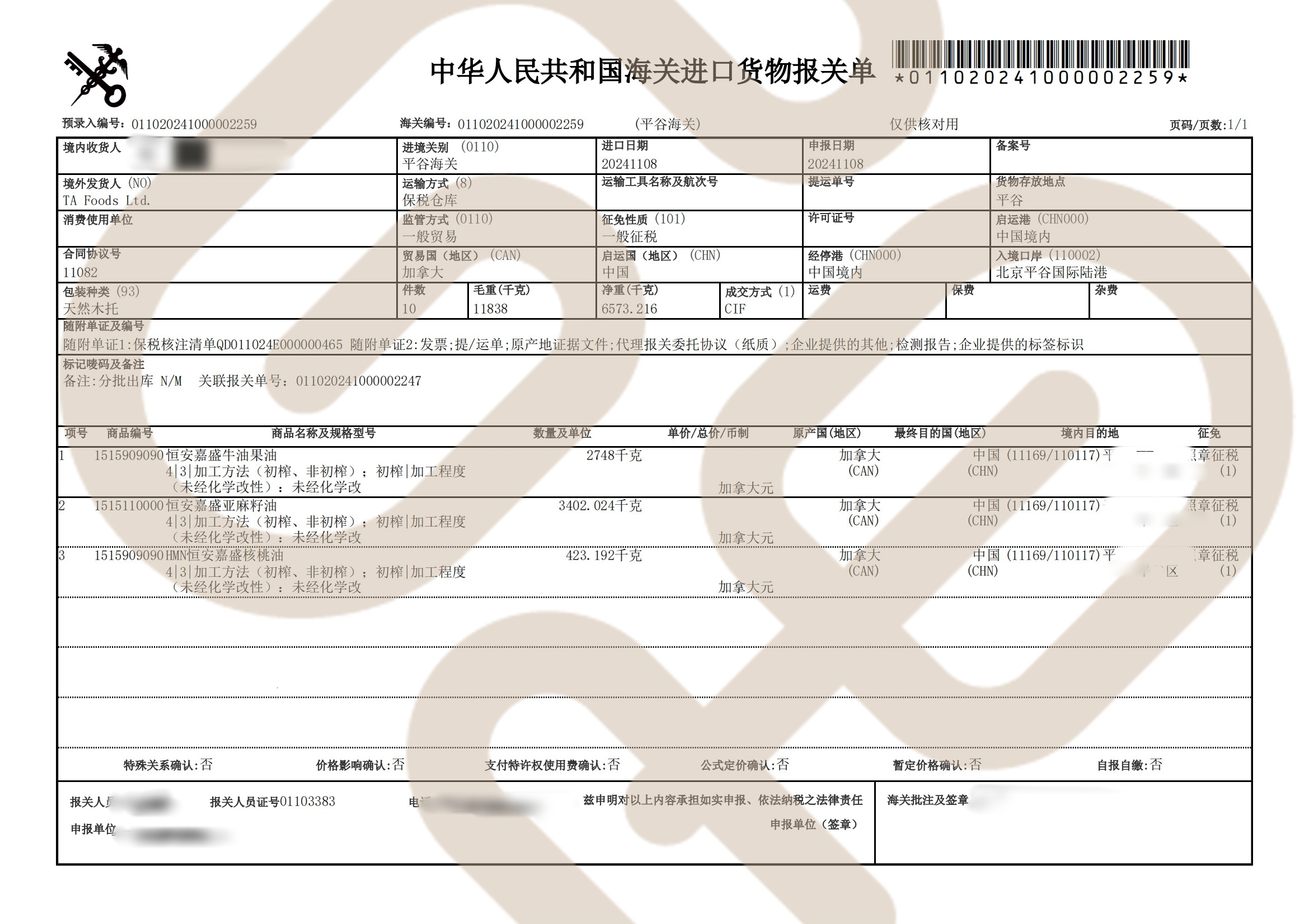 那就是罐装进来,国内分装的