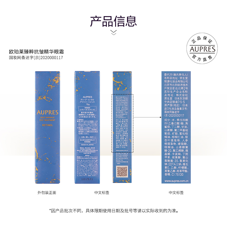 【爆】买15g送15g 1楼 欧珀莱纯A眼霜视黄醇温和淡化细纹修护 进口原装眼霜(有效期到2024.4)