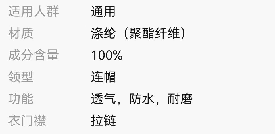 温馨提示:新批次单层款夹克风衣背后无长城标,加绒款背后有长城标,执行标准为夹克风衣标准,该款没有内胆!帽子不可拆卸