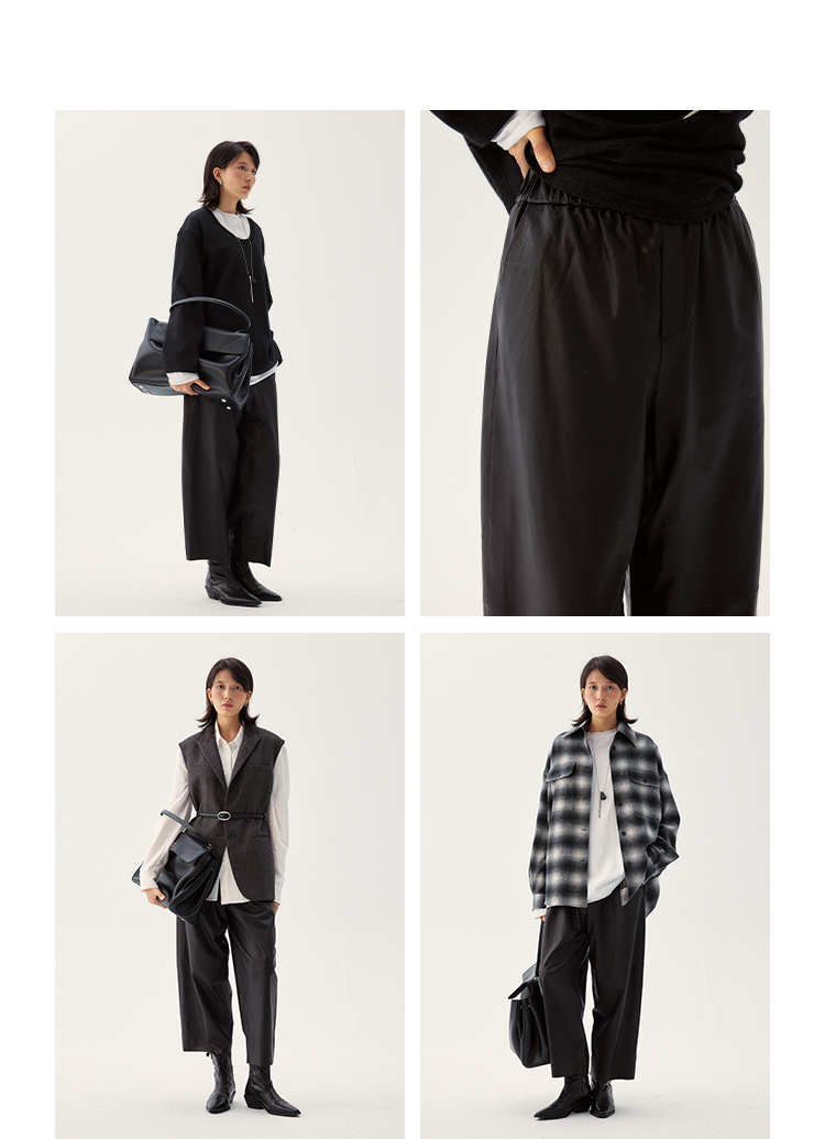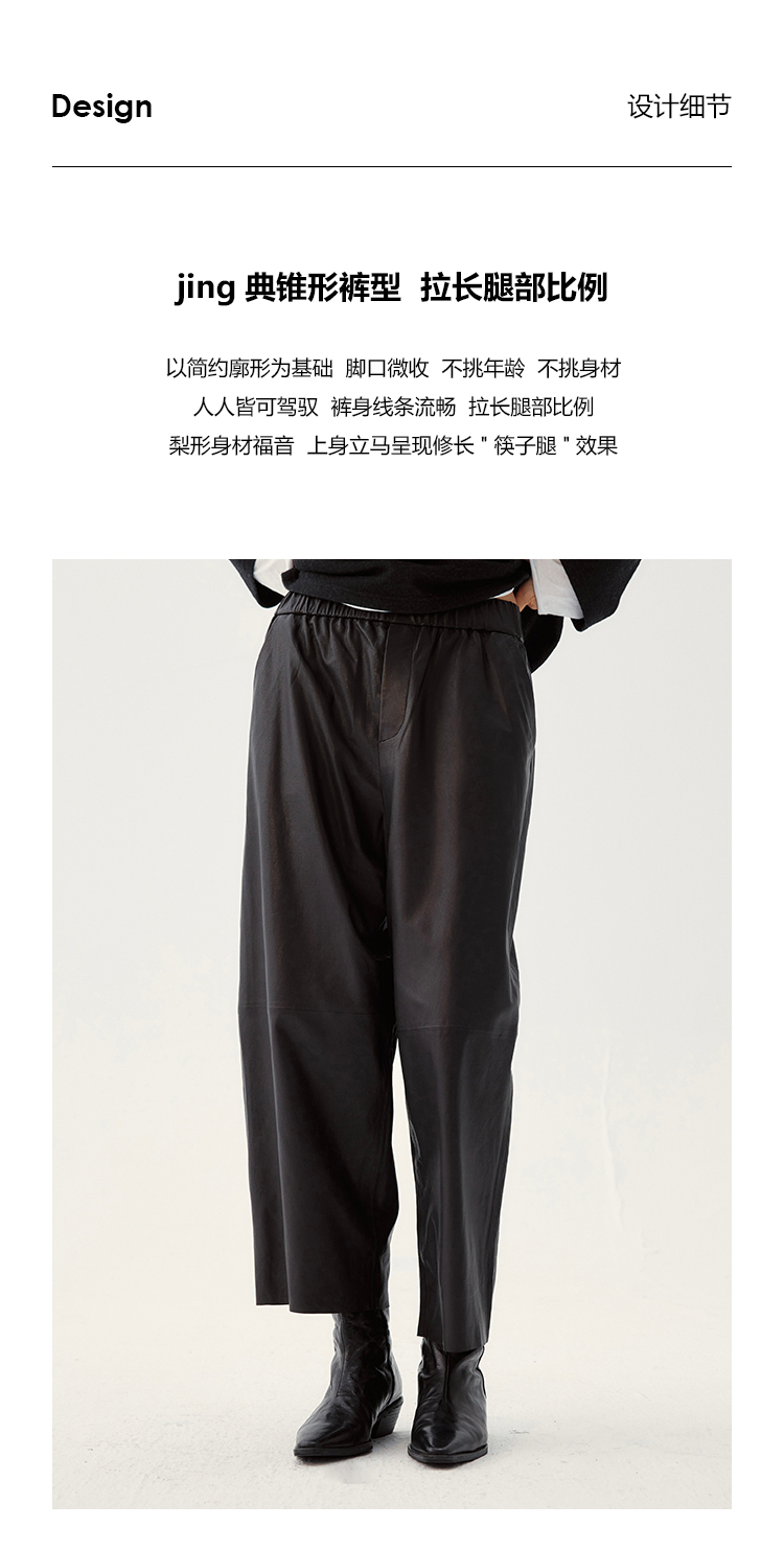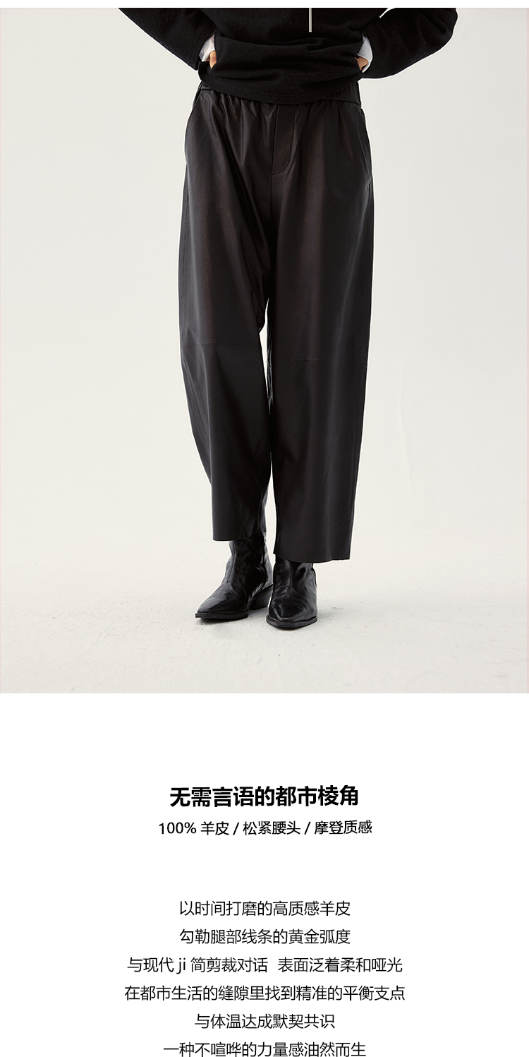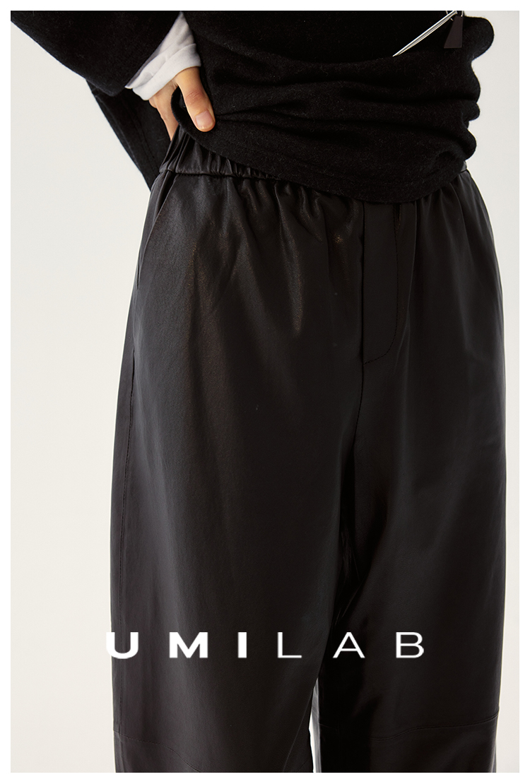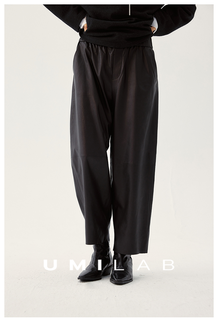 UMILAB|棱角*A级超薄无涂层植鞣羊皮 松紧腰藏肉锥形皮裤BP1302W