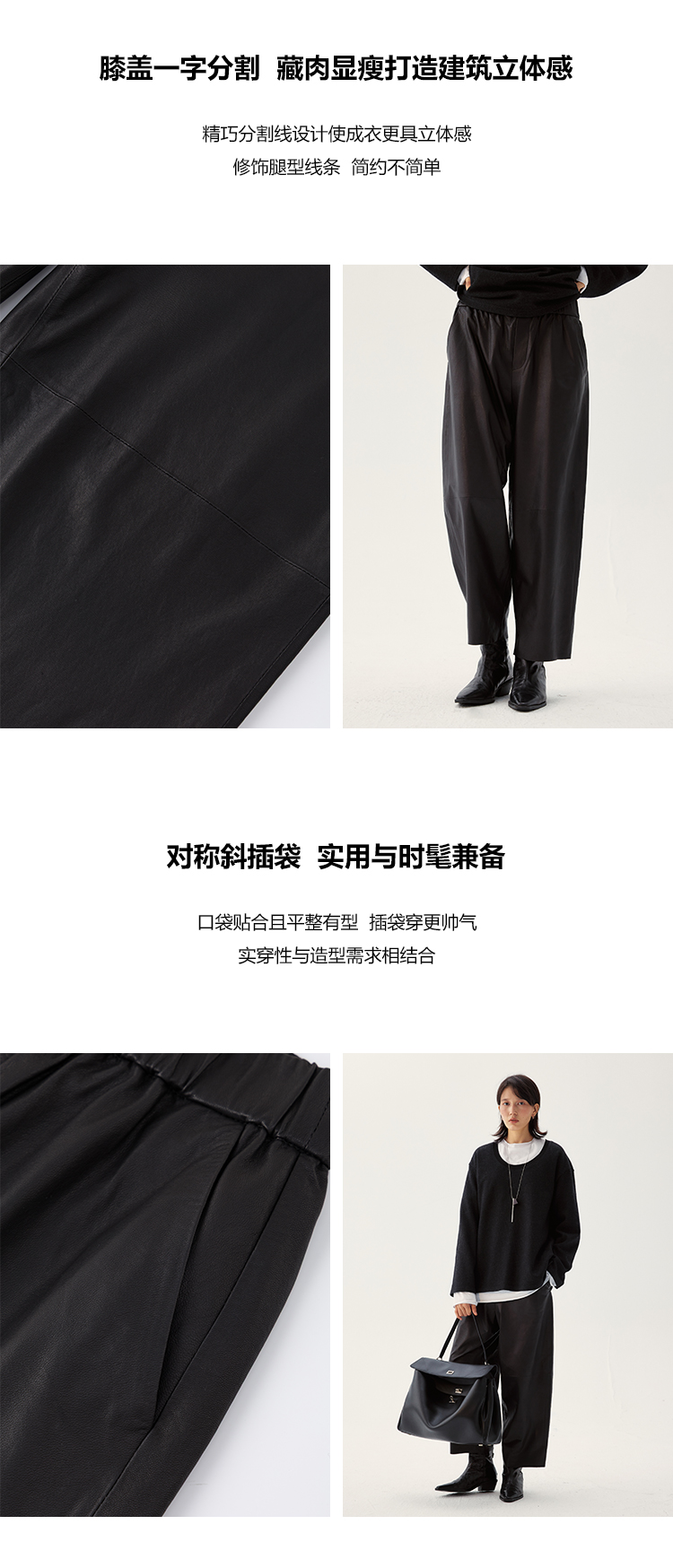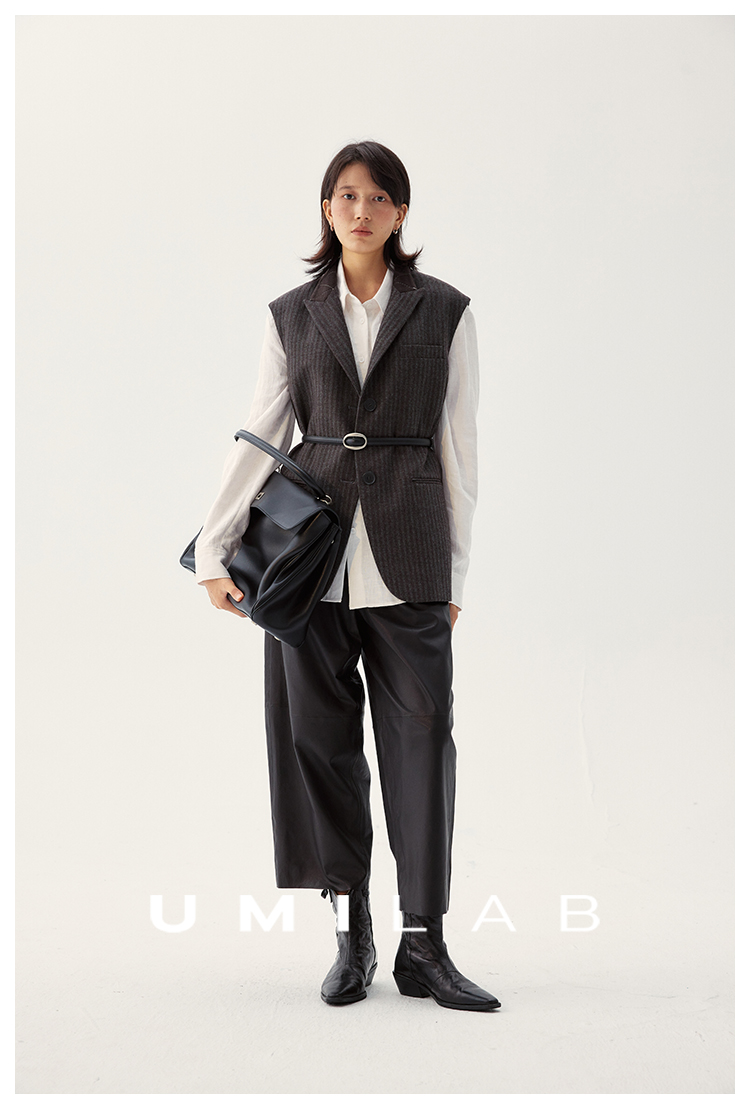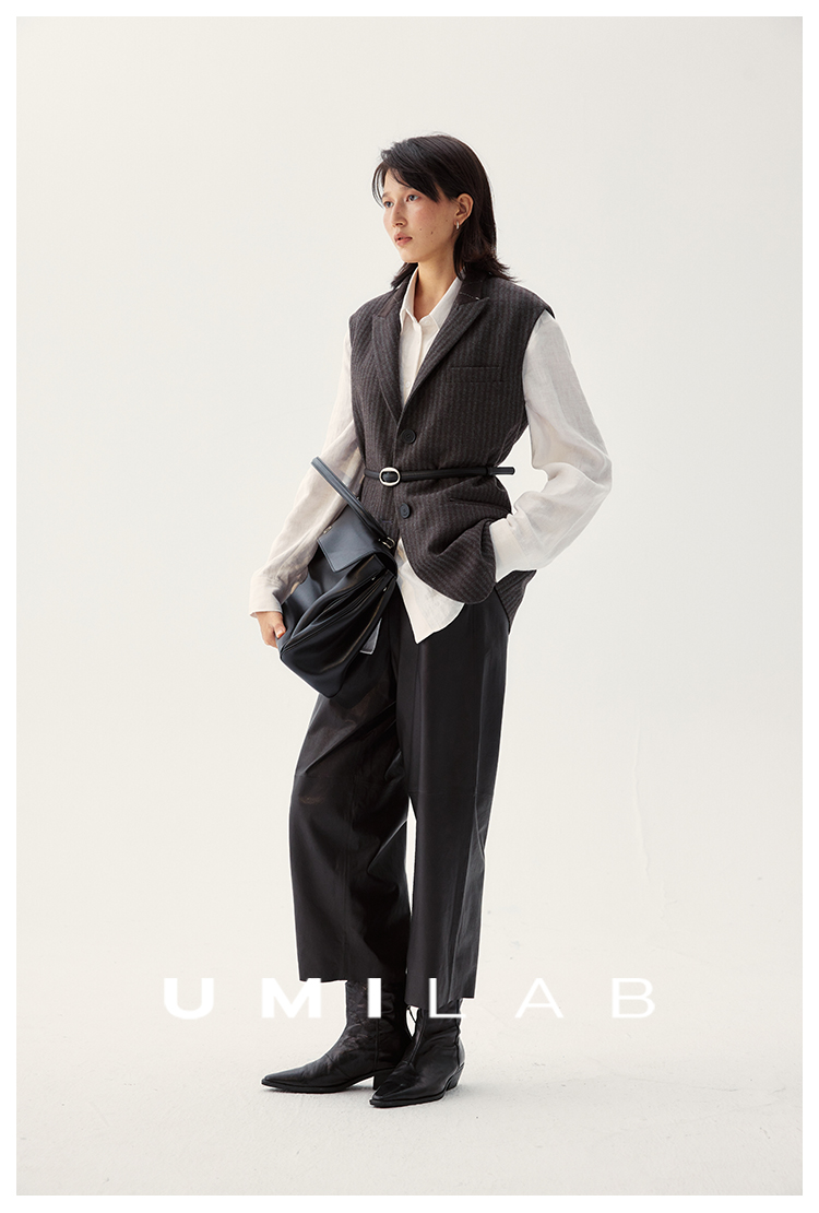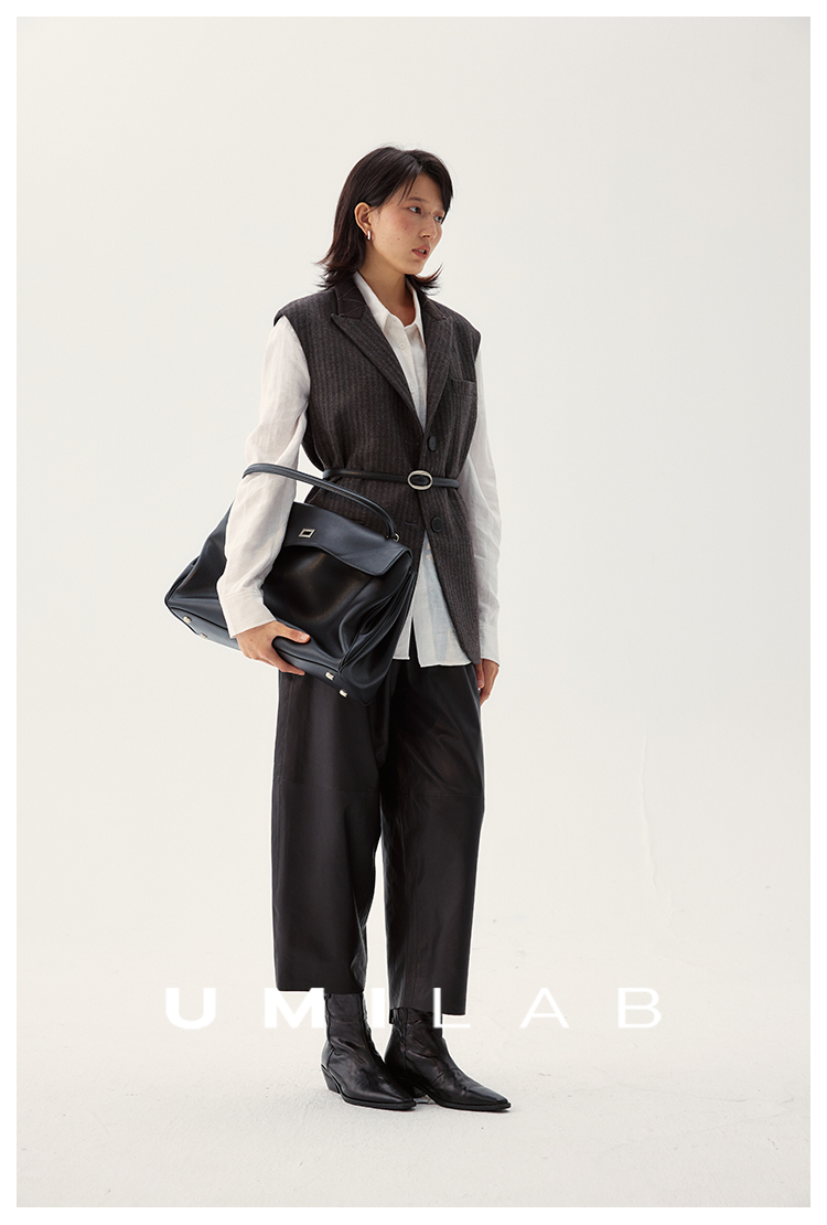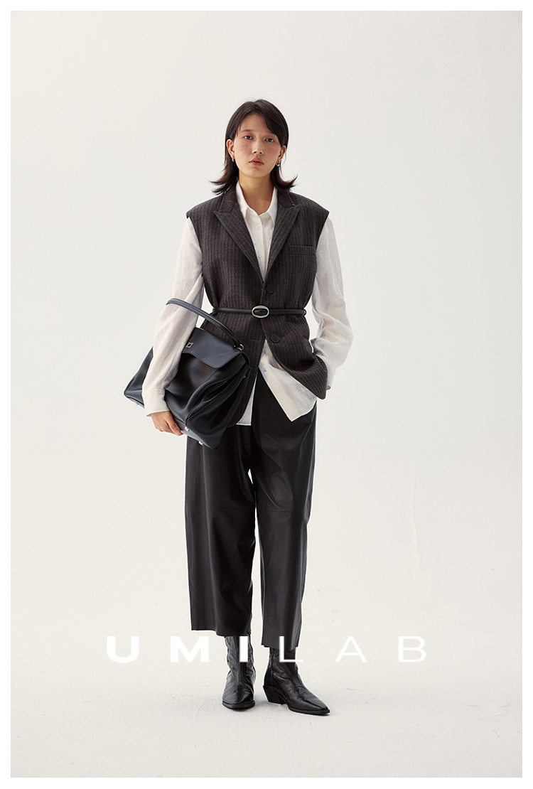 UMILAB|棱角*A级超薄无涂层植鞣羊皮 松紧腰藏肉锥形皮裤BP1302W
