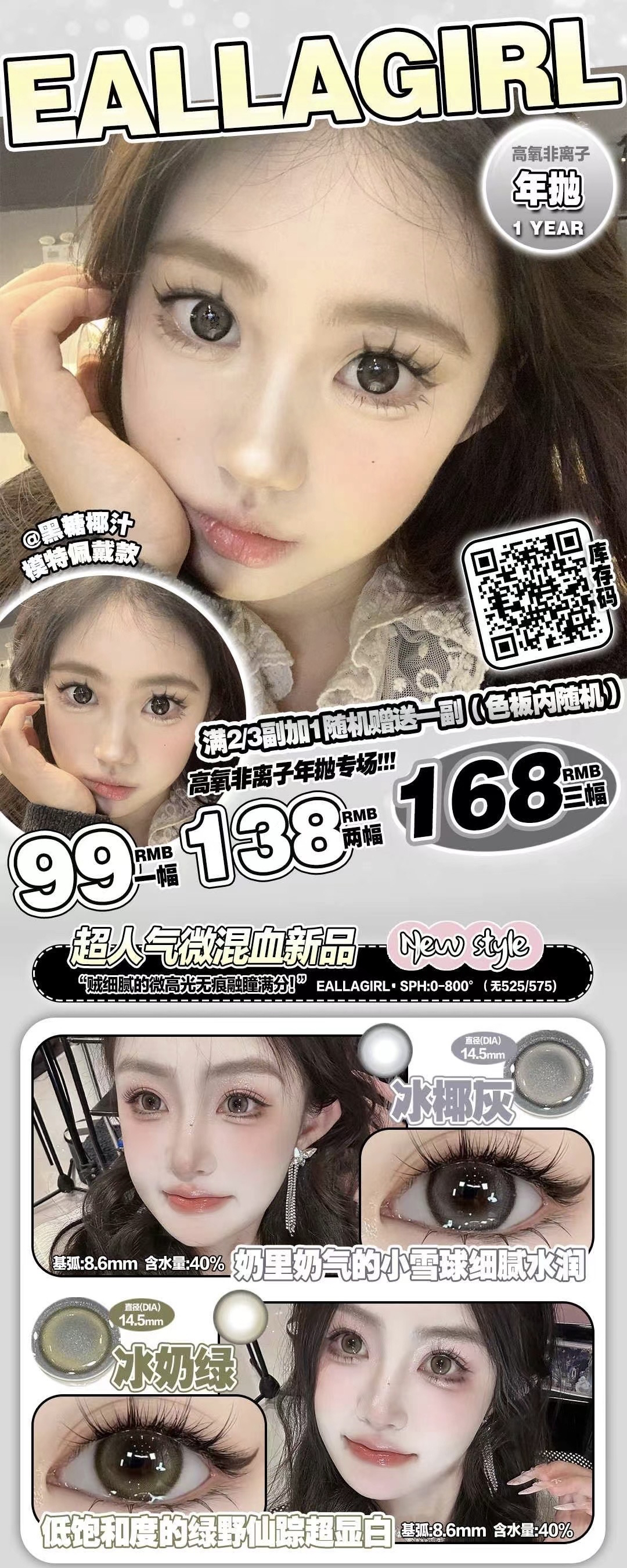 Ealla girl2024新年活动 “高透氧”新体验 超保湿透气12h原创设计;美貌与舒适度共存,敏敏眼冲!年抛/活动99/2副 再随机送一副到手3副 128/3副 再随机送一副到手4副