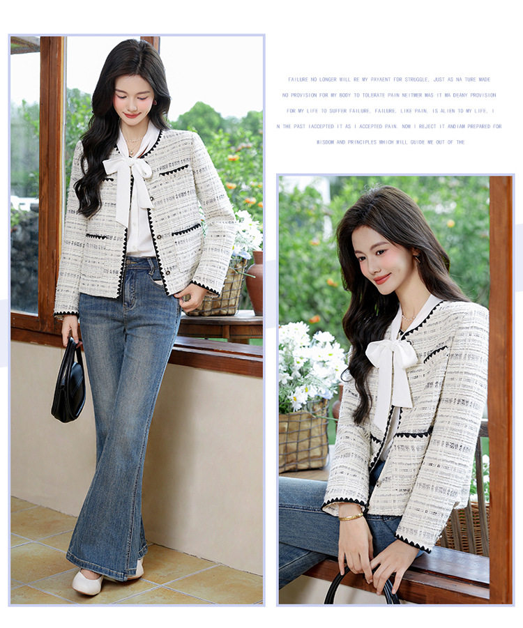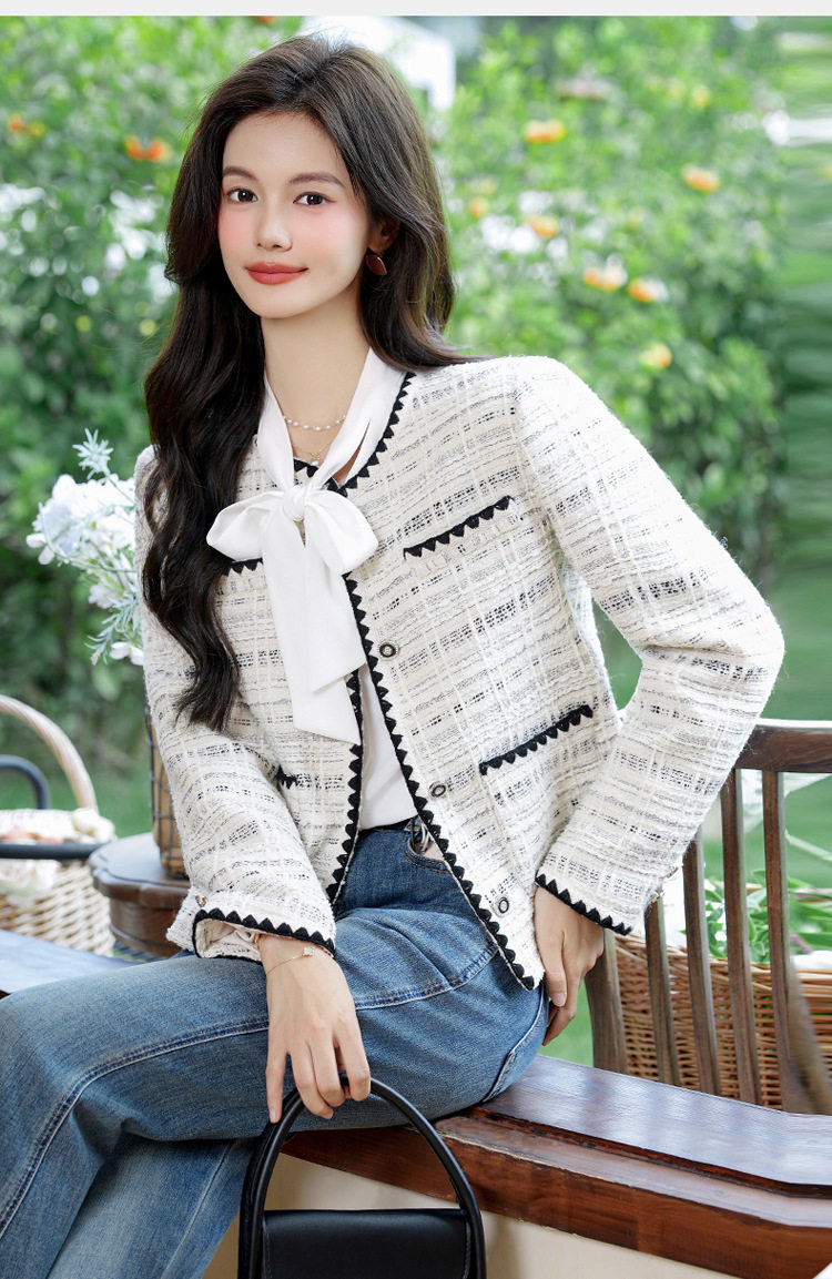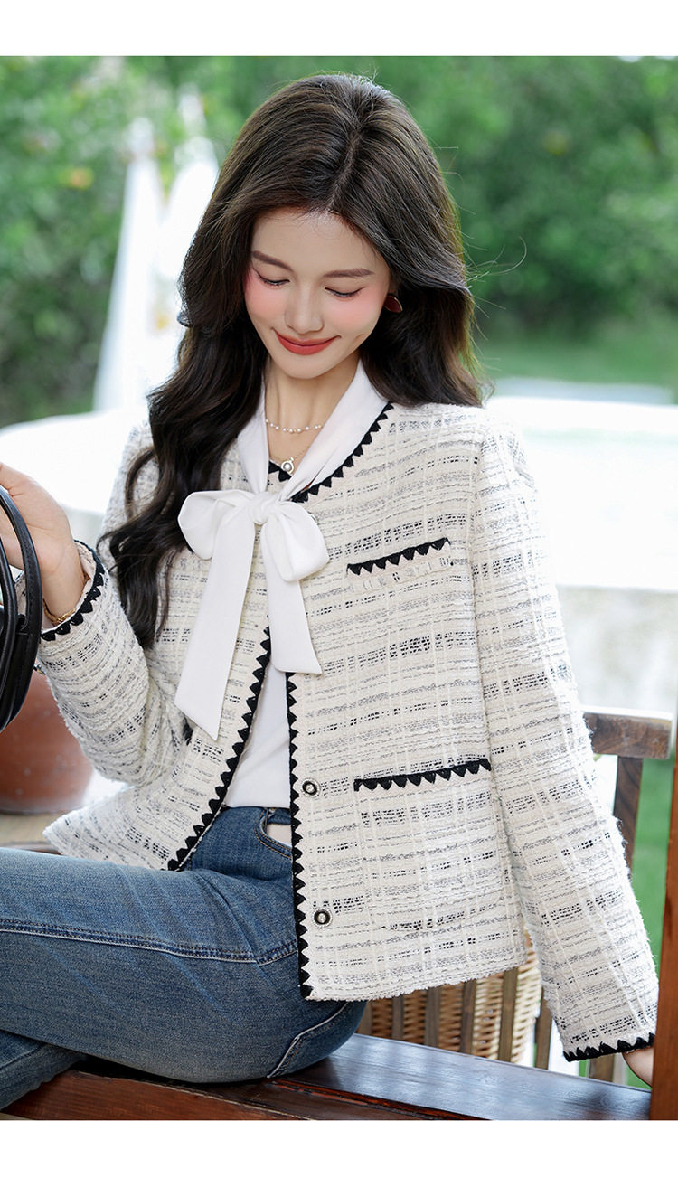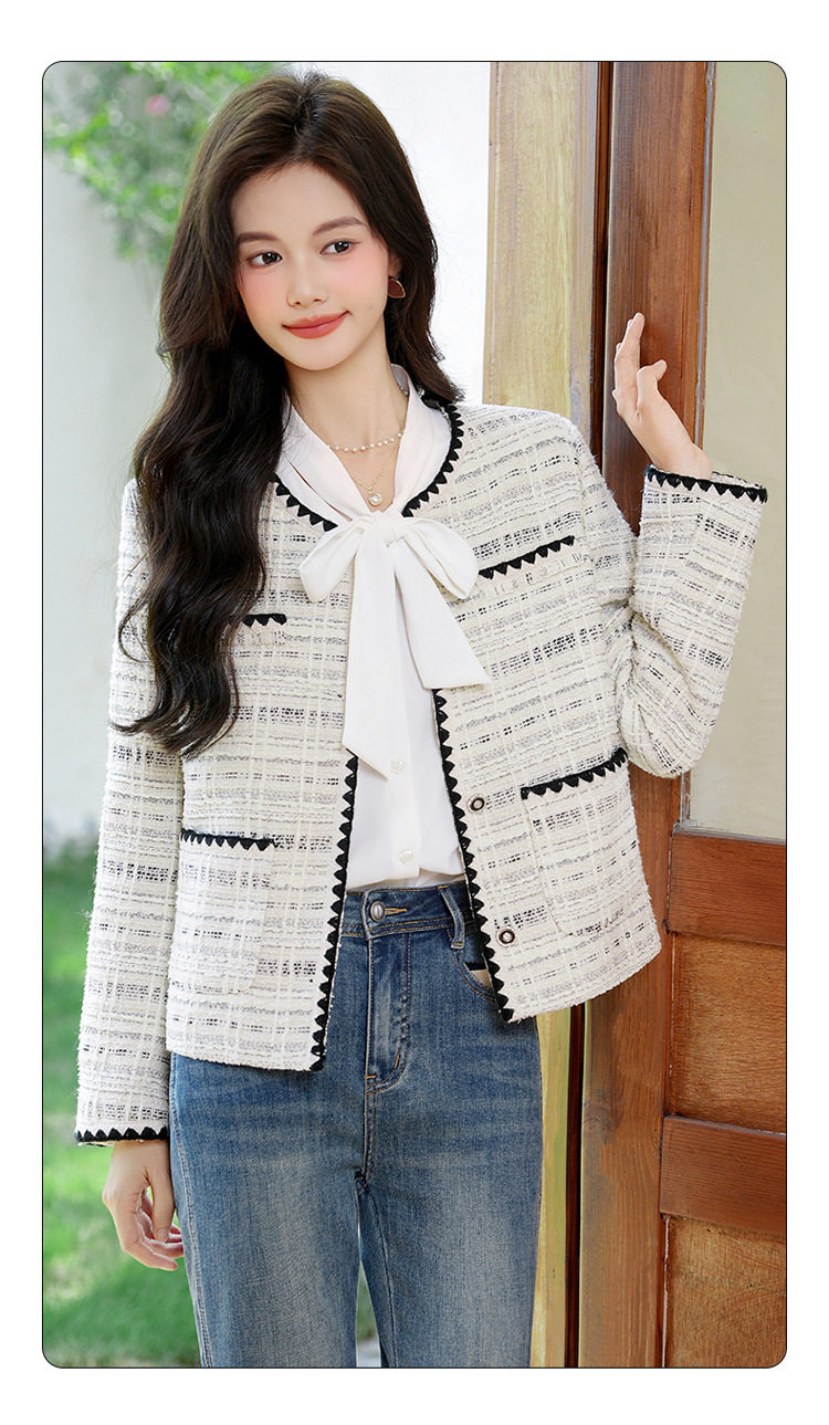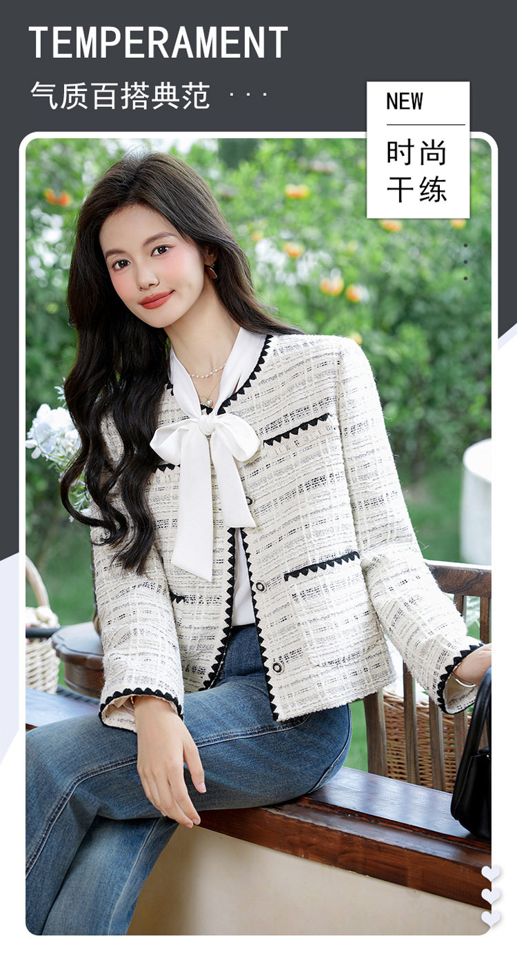 「自」全新升级【铂金会员183/天猫239/差价56】(54117)洛诗琳气质小香风外套2026春秋新款法式撞色编织短外套