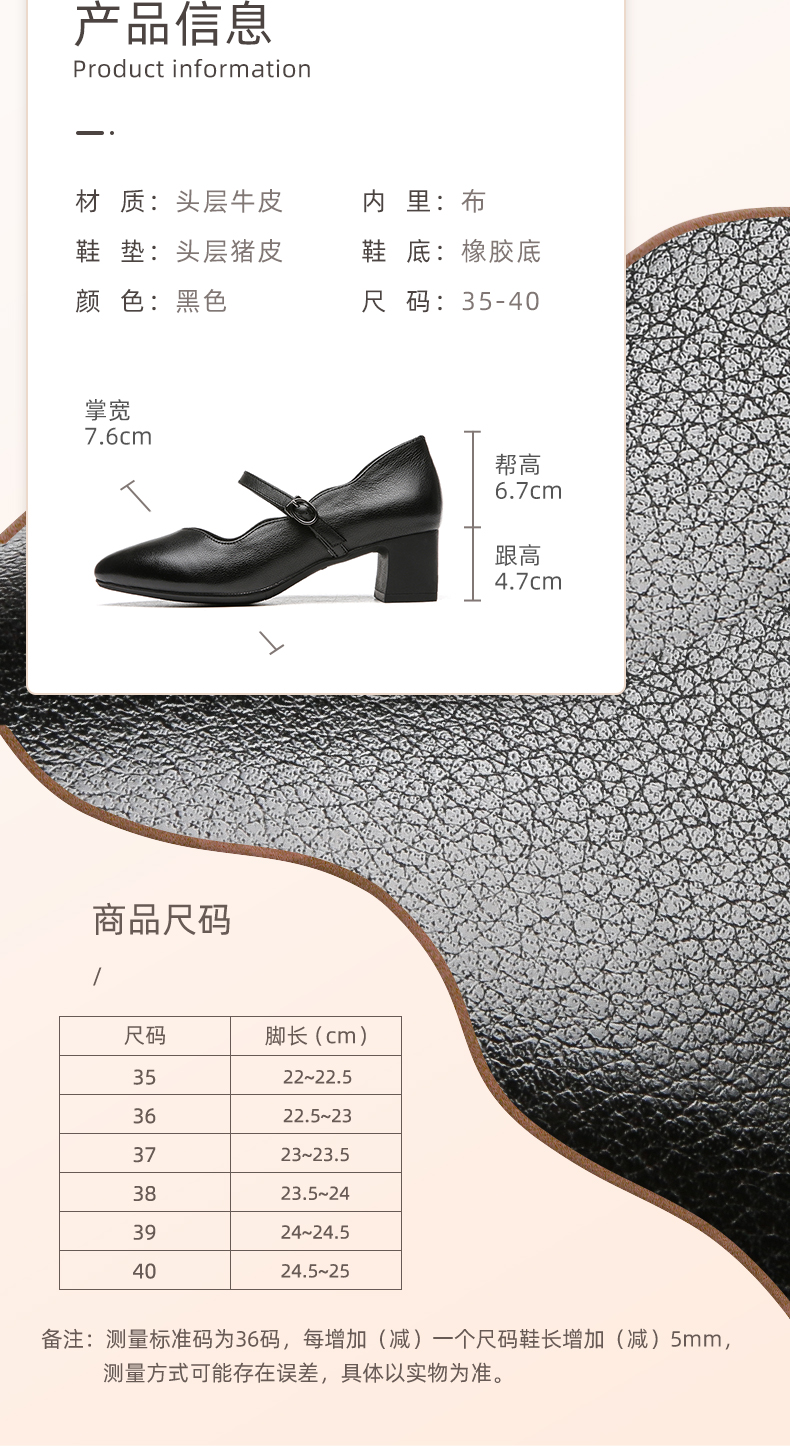 | 款式: 玛丽珍鞋 | 帮面材质: 头层牛皮 |