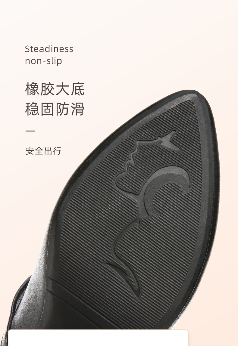 | 跟底款式: 粗跟 | 鞋底材质: 橡胶 |