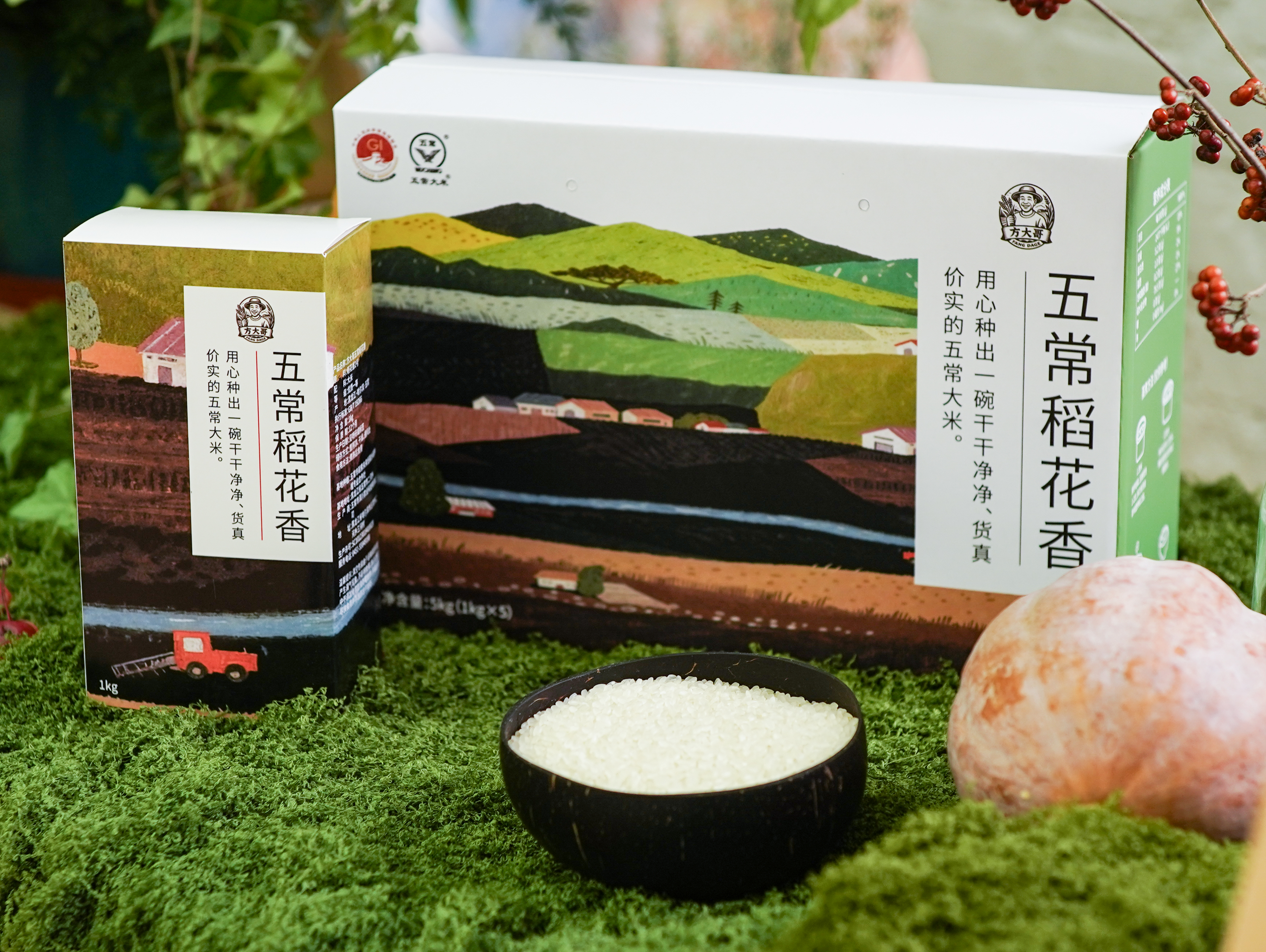 方大哥品牌郑重承诺:所有大米产地直发,绝不掺入一粒外地米,每粒米都来自五常核心产区的黑土地,保证纯正原产。