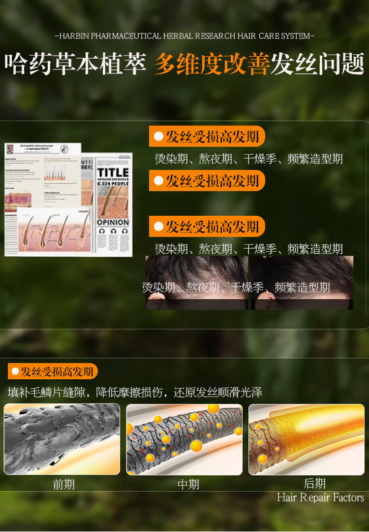 热卖中!!【哈药优品草本植萃系列:洗发水+沐浴露+发膜组合】0添加 天然配方 中草药成分 洗护更健康 有效 药企标准