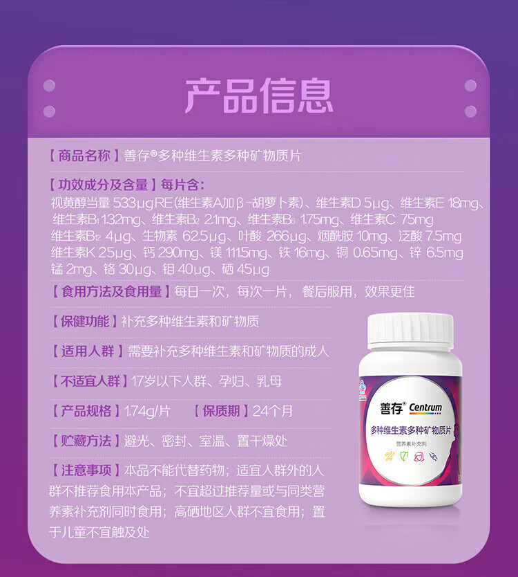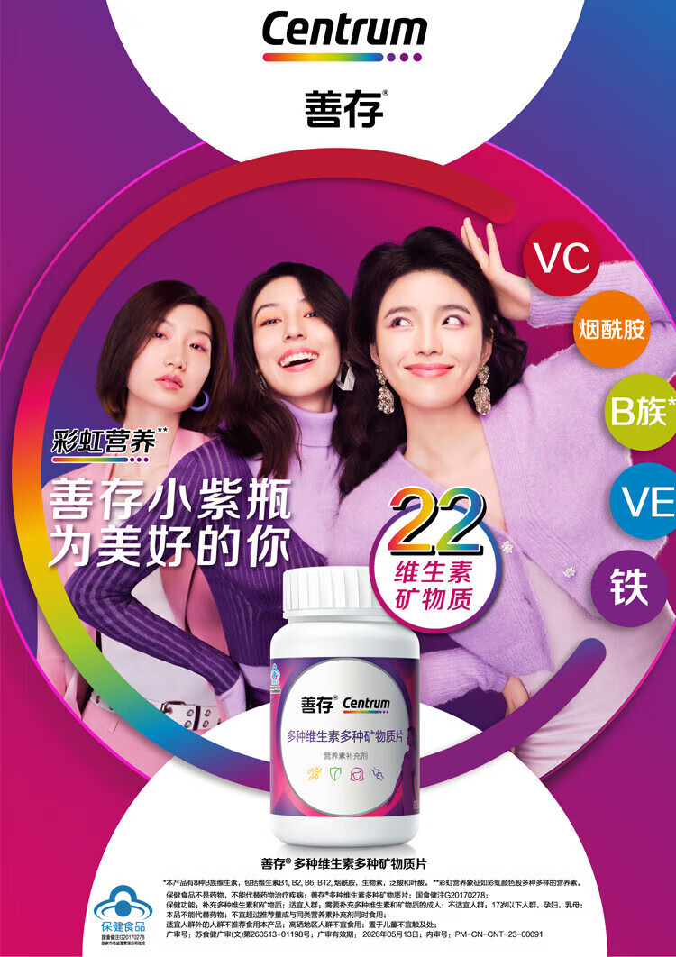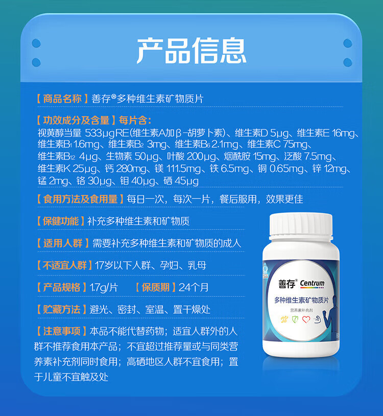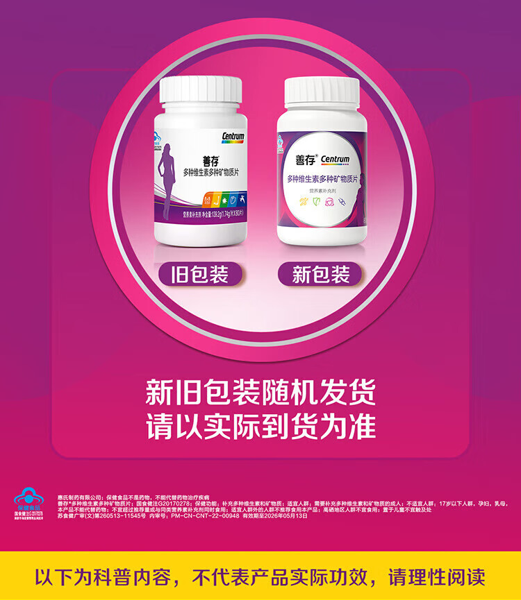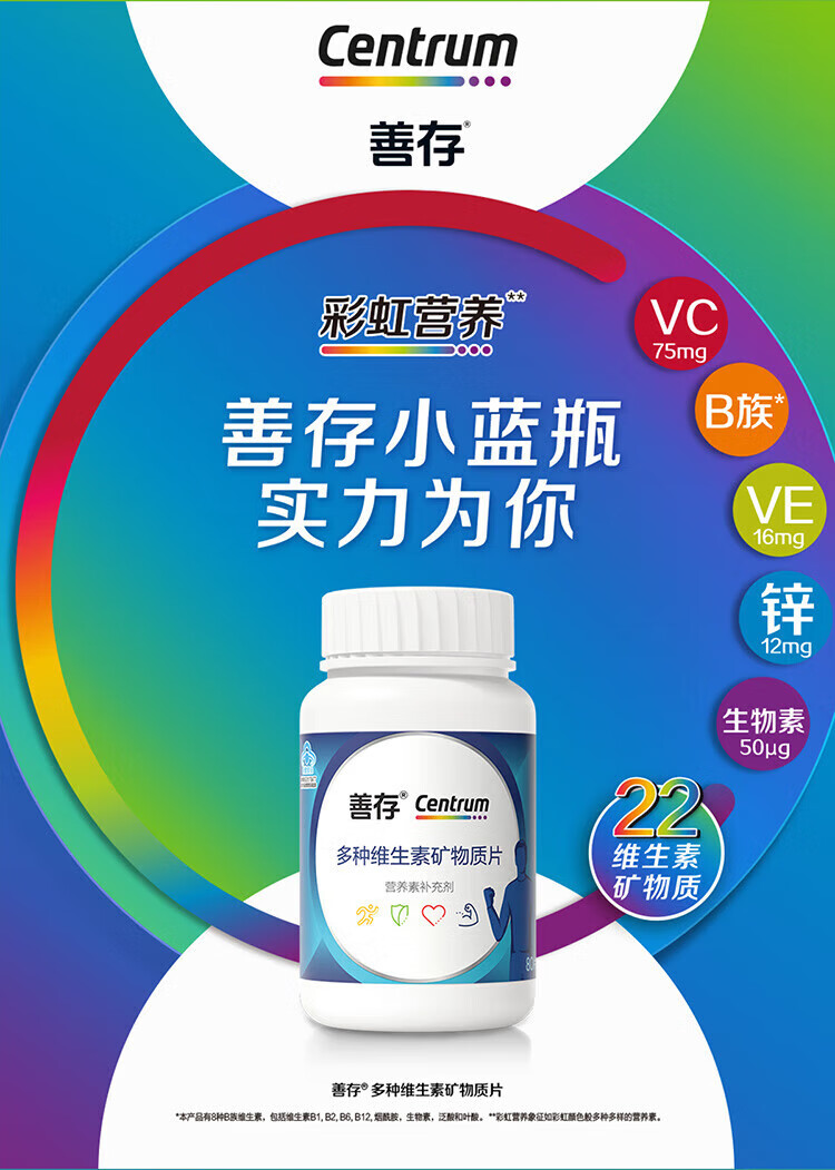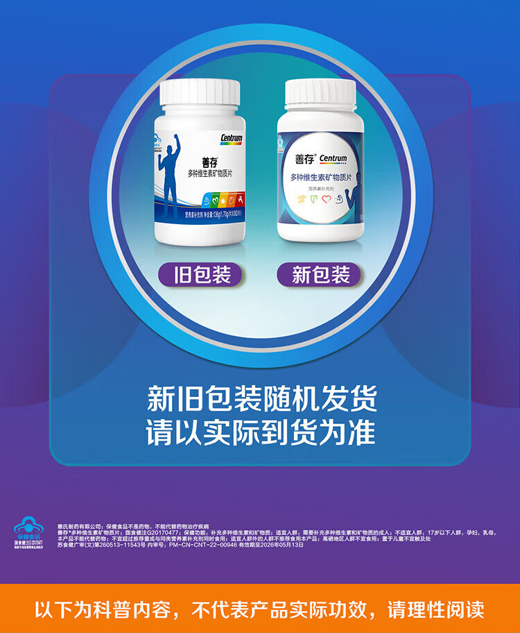 善存银善存 复合维生素 营养素矿物质片富含钙铁锌维生素c vVC VB VE新老包装随机发 多维片男士女士维生素80片