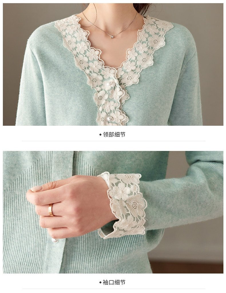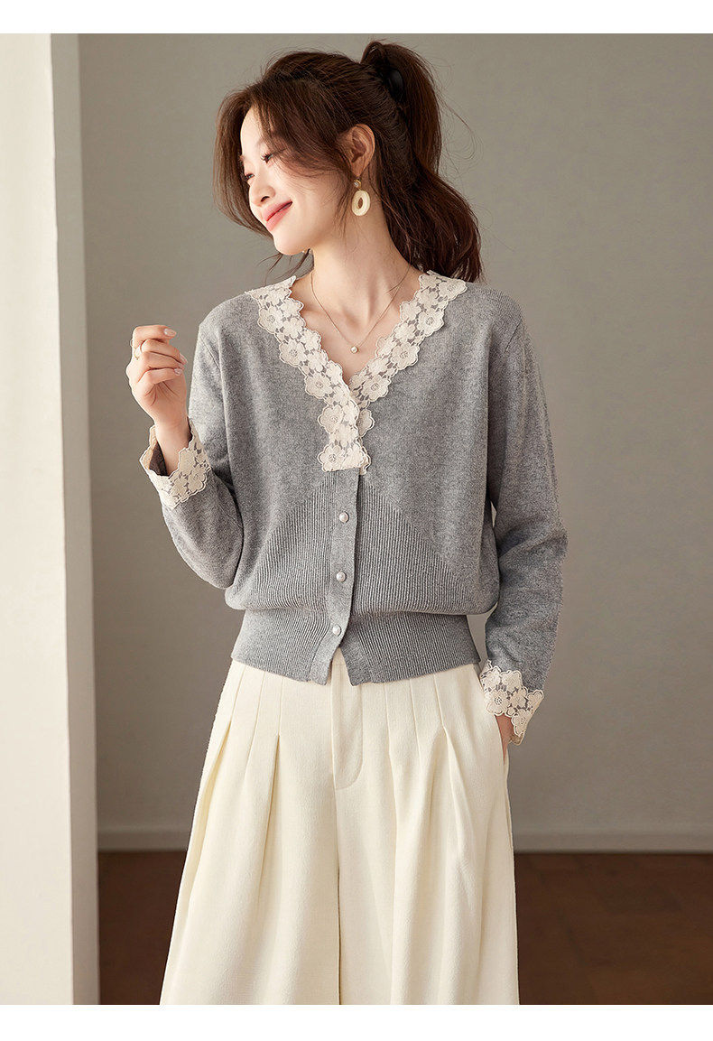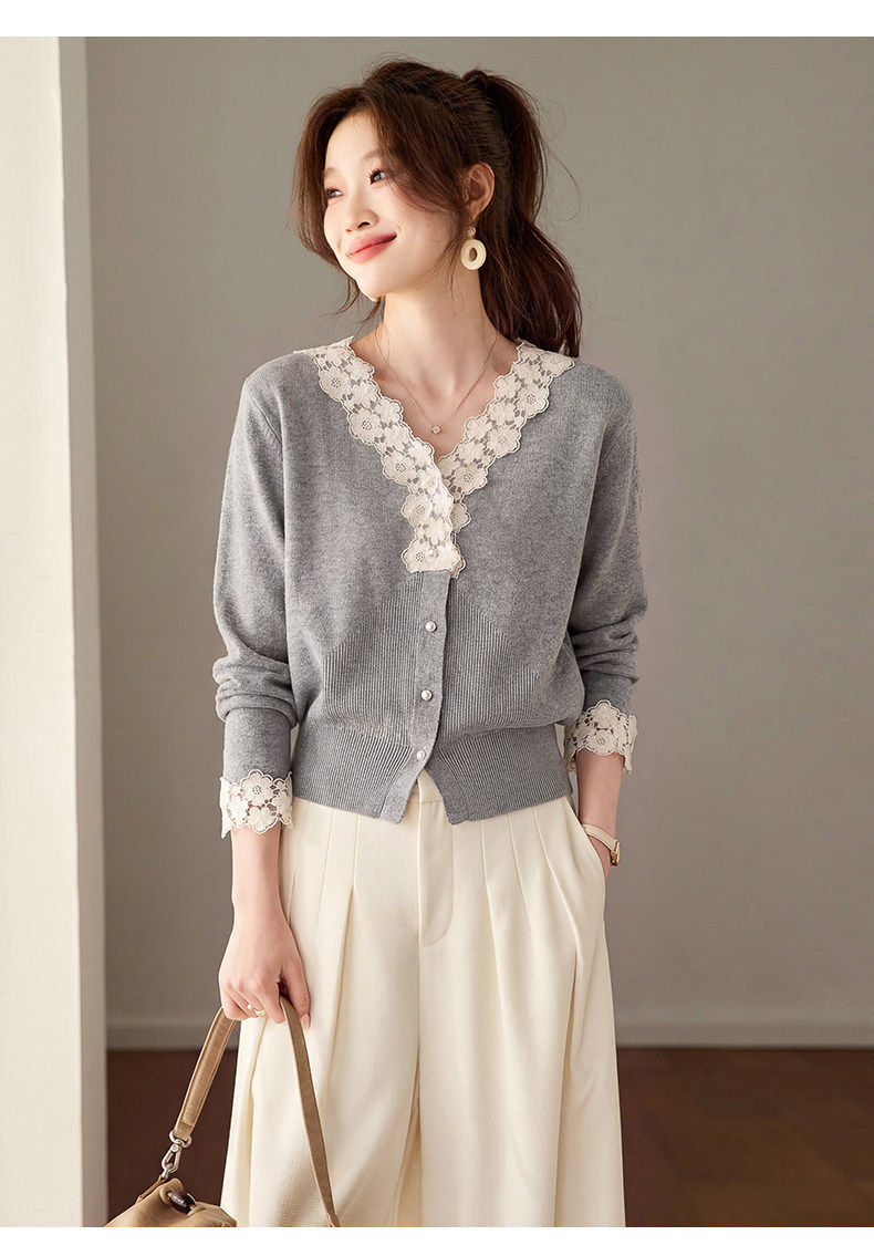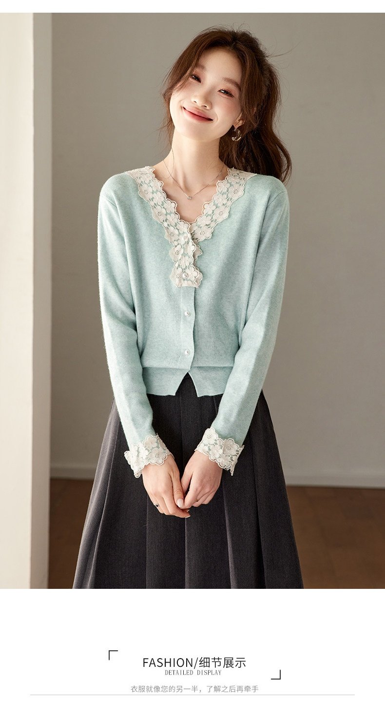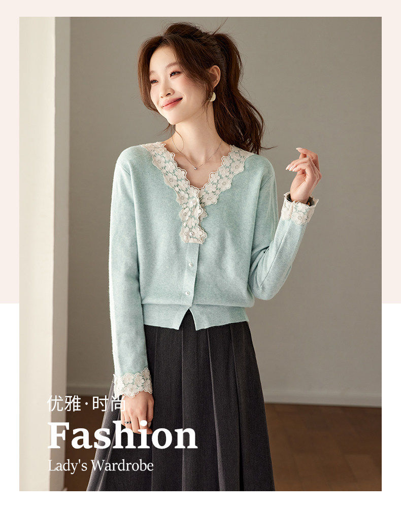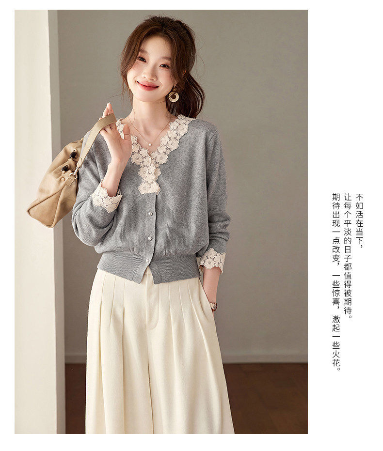 「自」全新升级【铂金会员183/天猫249/差价66】(21851)洛诗琳法式蕾丝V领针织衫2026春季新款设计感针织开衫女