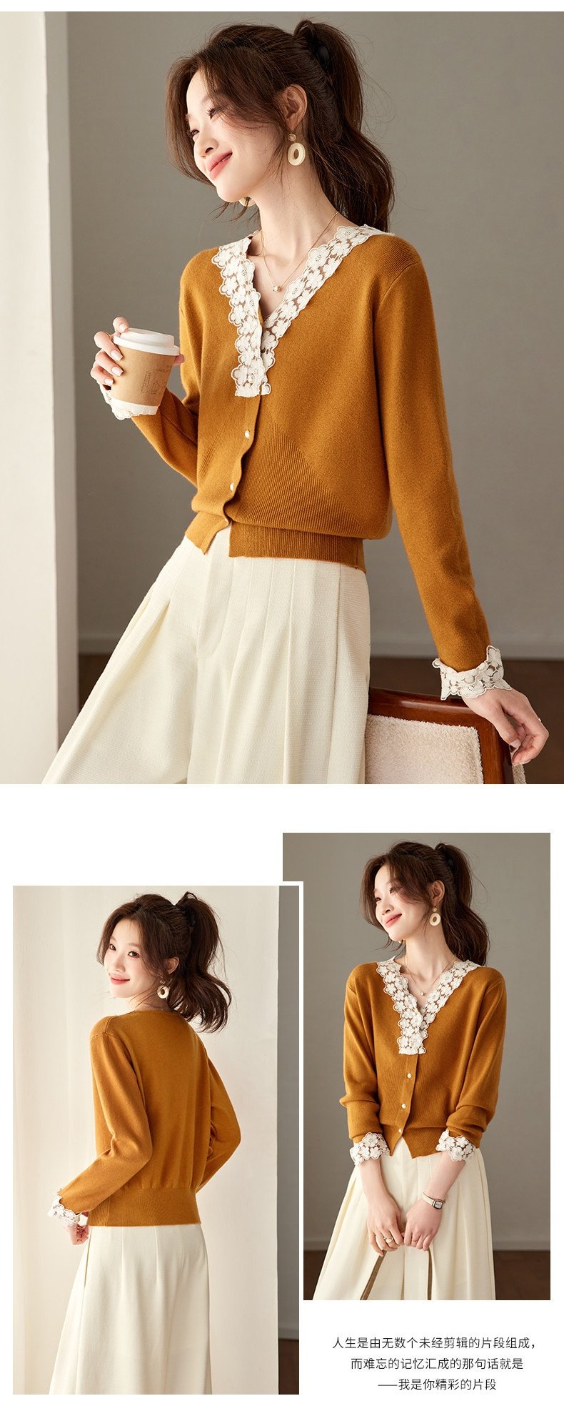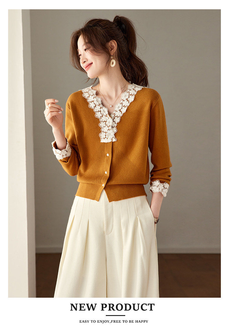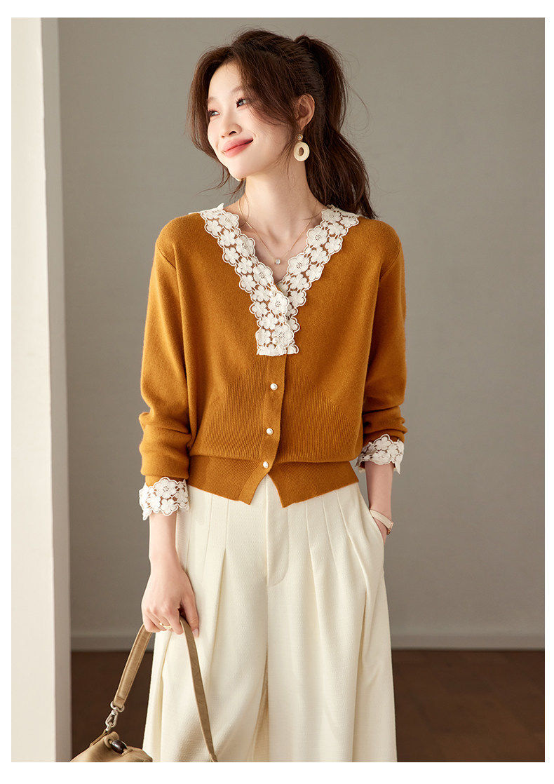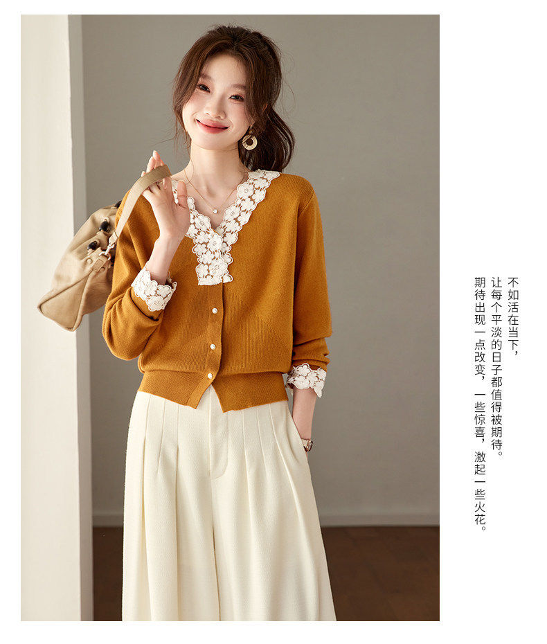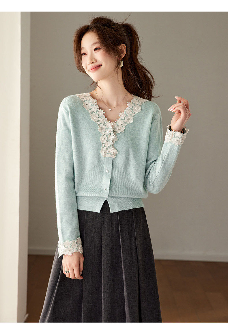 「自」全新升级【铂金会员183/天猫249/差价66】(21851)洛诗琳法式蕾丝V领针织衫2026春季新款设计感针织开衫女
